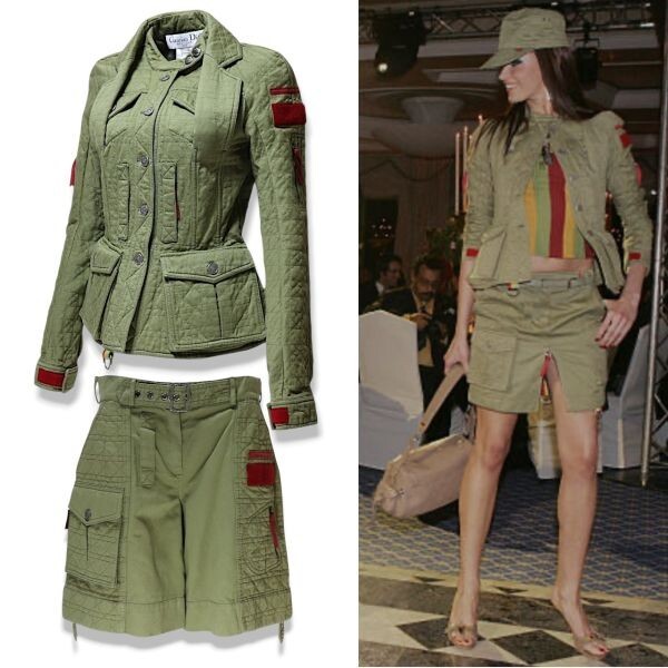 | 良品 ◆超レア◆ 国内正規品 Christian Dior クリスチャン ディオール John Galliano ガリアーノ ラスタカラー ミリタリー カナージュ ジャケット ハーフパンツ セットアップ 38 カーキ イタリア製 | ||||