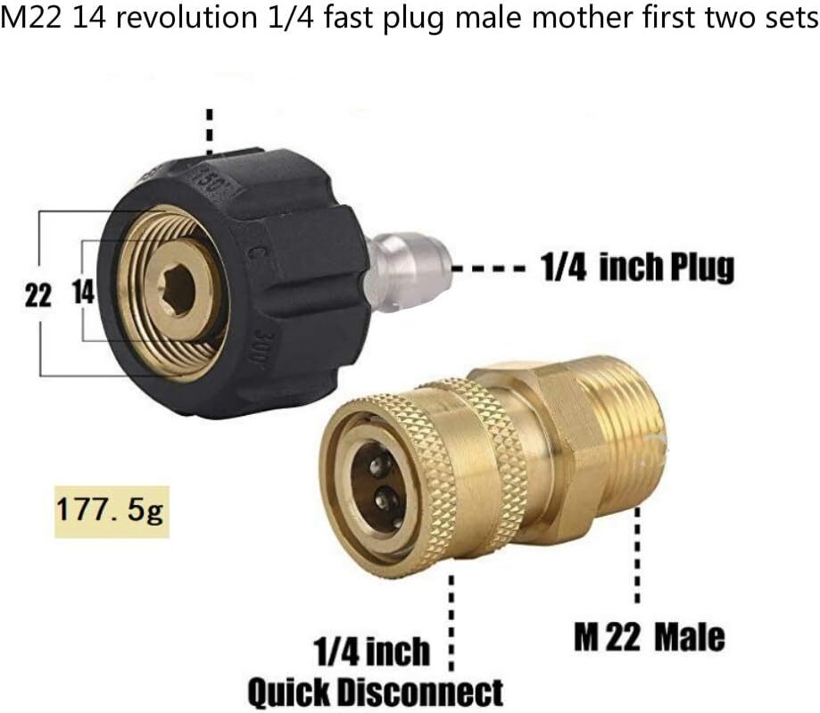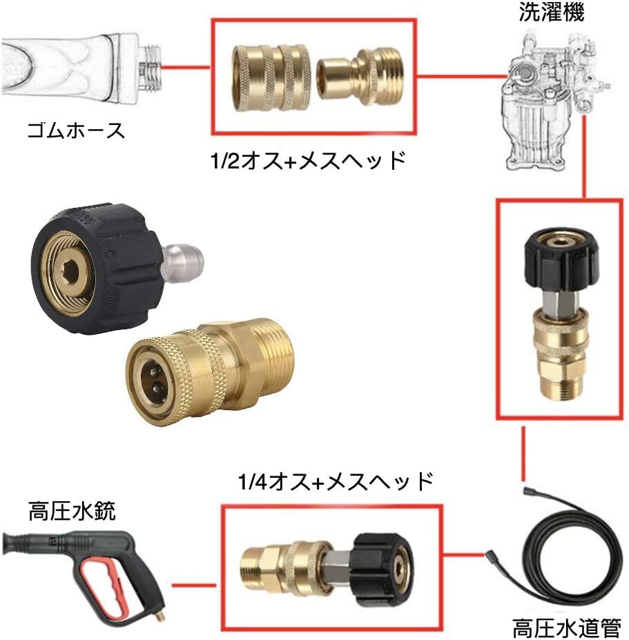2個入 高圧洗浄機 ガン プレッシャー ワッシャー アダプター セット 1/4 M22 高圧洗浄ノズルアダプターカプラー ホースの取付け・取外しをワンタッチで 高圧洗浄機用