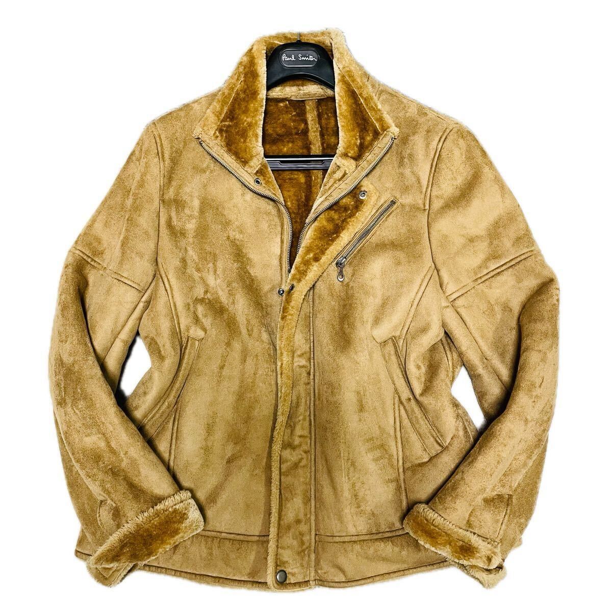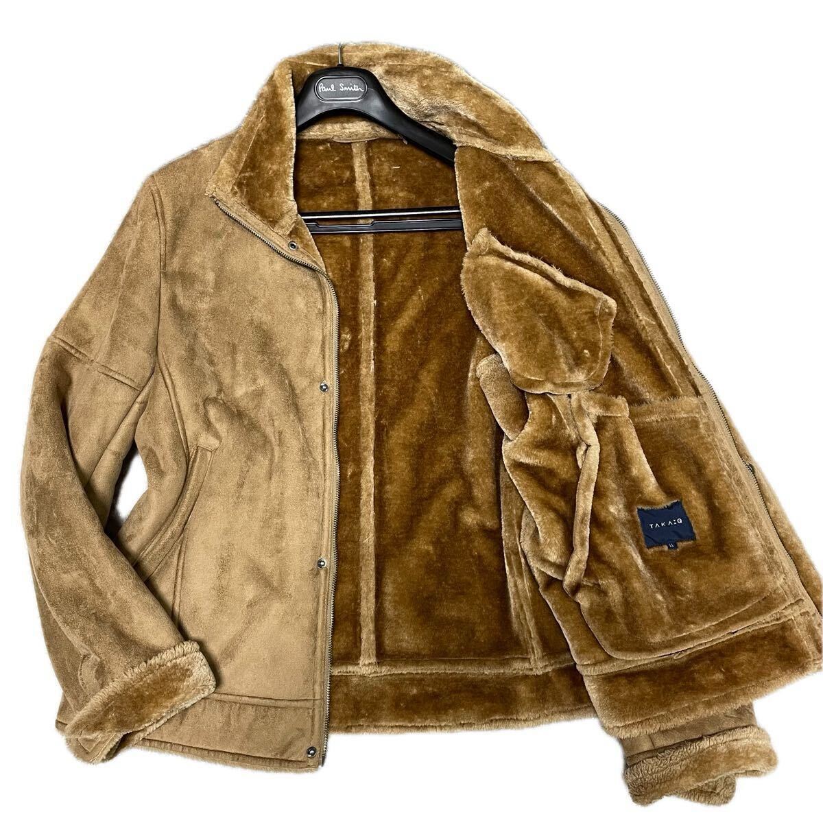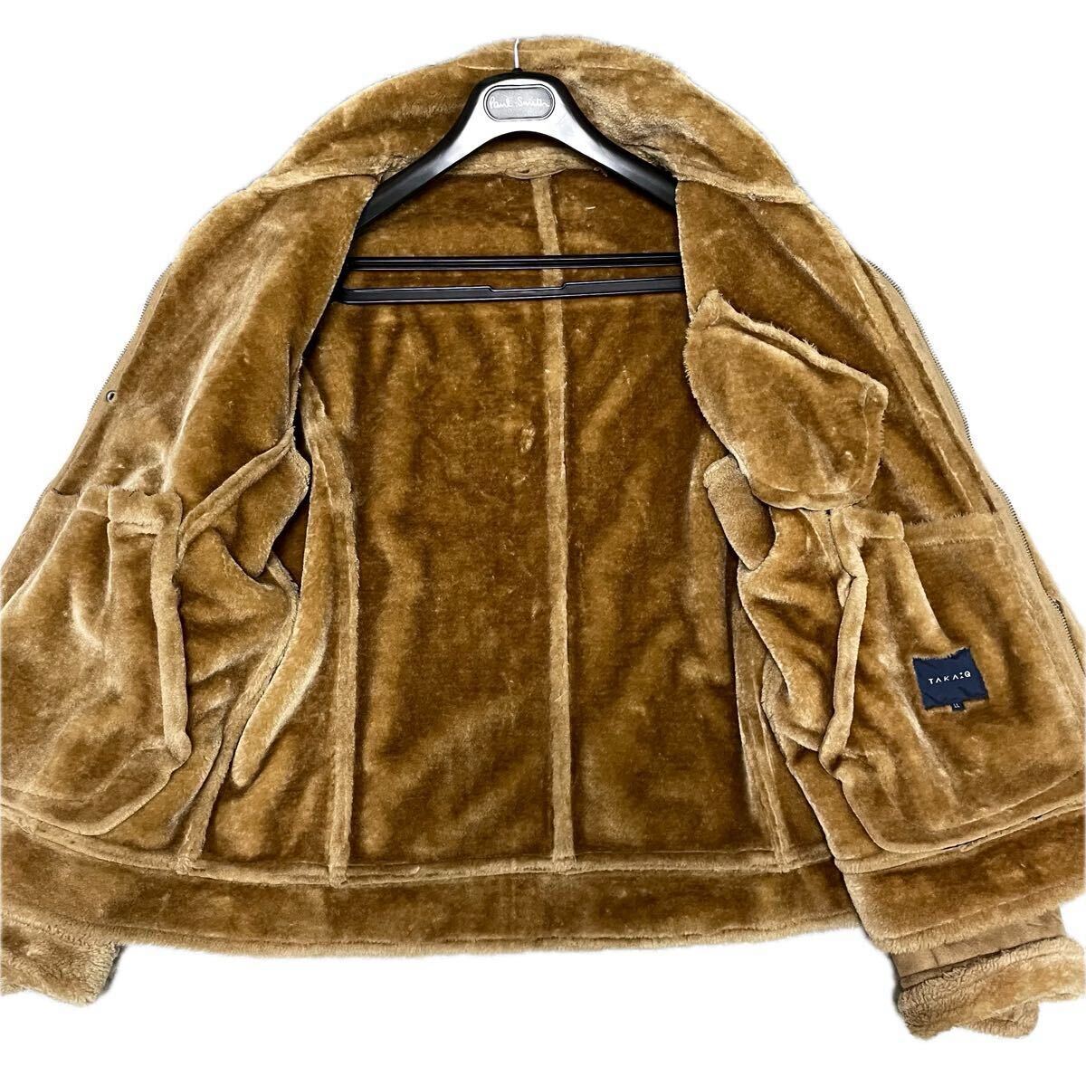希少LLサイズ!大きいサイズ◆TAKAQ タカキュー ムートンコート ジャケット ライダース ボア ファー 毛皮 極暖 肉厚 キャメル ブラウン
