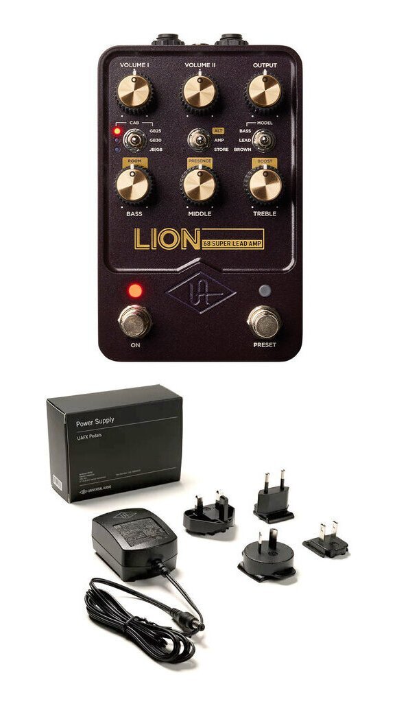 | ロックを支える、象徴的なプレキシトーンを手にする UAFX Lion’68 Super Lead Ampペダルは、Jimi Hendrix、Van Halen、Led Zeppelin、AC/DCなど、数十年に渡り伝説的なアーティストの使用によって有名になった、クラシックなブリティッシュ・アンプ・サウンドを提供します*。 Lion’68は、3つの異なる100ワットのプレキシ・アンプのトーンを忠実に再現する唯一のペダルです。パワフルなデュアル・エンジン・プロセッシングとワールドクラスのUADモデリングによって、オリジナルのゴージャスなクリーン、アグレッシブなブレイクアップ、そしてホットロッドと称される咆哮を得られます。 *アーティスト名は、UAFX Lion’68 Super Lead Ampを公式に推奨するものではありません。 ・ ・60年代後半の100ワット・プレキシ・ヘッドの最も本格的なエミュレーションをストンプボックスの形で実現。 ・Super Lead、Super Bass、そして「ブラウン」─3つの伝説的なプレキシ・セットアップでロックアウト。 ・どこにでも持ち運べる、伝説的なマイクとスピーカーのペアリング、ブースト、アンプ・モッドを備えた、烈火の如きビンテージ・アンプのサウンド。 ・UAFX Controlモバイル・アプリで、トーンのダウンロード、機能のカスタマイズ、プリセットの検索などが可能。 ステージで、スタジオで、本物のチューブ・アンプのトーンを得る アンプリグの代わりにFOHへ直接出力する場合でも。DAWに録音する場合でも。他のデジタル・モデラーを遥かに凌ぐリアリズムをもって、Lion’68は、巧みにマイキングされた3つの100ワット・プレキシ・ヘッドの「ゴールデン・ユニット」から得られる、刺激的なトーンを提供します。 受賞歴に輝く、スピーカー・キャビネット・エミュレーション OX|Amp Top Boxのダイナミック・スピーカー・モデリング・テクノロジーを採用したLion’68 Super Leadは、完璧に配置されたスタジオマイクとダイナミックなルームサウンドによって、6つのクラシックなスピーカー・キャビネットのセットアップが生み出す、本物の衝撃をもたらします。 本格的なSuper Leadのサウンド Lion’68は、厳選されたビンテージSuper Leadのヘッドから得られる、ベルのようなクリーン、アグレッシブなケラング、高鳴るディストーションを忠実に再現。スピーカーから飛び出す、まさにロックなトーンに心酔できる、唯一の「アンプ・イン・ア・ボックス」ペダルです。 クラシックなSuper Bassのトーン 攻撃性を抑えた、スポンジのようなアタックとクリーンなヘッドルームをお探しですか? Lion’68が提供するSuper Bassのトーンは、オーバードライブ、ファズ、ディレイなどとの組み合わせに最適で、この素晴らしいプレキシのバリエーションを見事に再現しています。 極上のブラウン・サウンド Van Halenの「ブラウン・サウンド」は、Super Leadトーンの極みとして知られています。電圧不足のSuper Leadアンプの凶暴性から、Celestion 25W”Greenback”/JBL D-120F 4x12キャビネットのミックスに至る、何世代ものギタリストにインスピレーションを与えた、アグレッシブなシズル感、ソフトな中域のアタック、そして明瞭さを得られます。** 本物のブーストを加える Lion’68は、Maestro EP-IIIプリアンプやBoss GE-10 10バンドEQなど、実証済みのブースト・レシピによって、クランチや灼熱のリード・トーンをさらに進化させることができます。 MIDIでサウンドを拡張 Lion’68は、リアパネルのUSB-MIDI接続端子を介してあらゆるMIDIプログラマブル・デバイスと直接接続することができ、プリセットの変更やブースト、EQなどのリアルタイム・コントロールが可能です。 対応するUSB-MIDIホスト、コントローラー、またはインターフェイスが別途必要です。 有線、またはBluetooth接続によるパワフルなアプリ・コントロール UAFX Controlモバイル・アプリを使えば、Lion’68のすべてにアクセスできます。プリセットのカスタマイズ、保存、管理、アーティスト・トーンの呼び出し、そして最大4つの内蔵プリセットとライブモードに対応するフットスイッチ・モードの設定などを、安定したBluetooth接続で行えます。 「ゴールデン・ユニット」に関する詳細 クラシックなプレキシ・サウンドをキャプチャーするために、UAは、「レイダウン」トランスを備えた最高の個体(68年製Super Leadと、69年製Super Bass)を探しました。 また、「ブラウン」アンプでは、Variacを使用して壁電源を90ボルトまで下げ、アンプを特別にホットな状態にリバイアスし、これまでに収録された中で最も有名なホットロッド・サウンドとその感触を提供します。 ご注意ください UAFX Lion’68 Super Lead Ampには、400mAのアイソレートされた電源(別売)が必要です。詳細は、こちらをご覧ください。 UAFX本体のファームウェア更新を行う際は、UA Connectアプリのシステム必要条件を満たすコンピューターが別途必要です。詳細は、こちらをご覧ください。 **ここで使用されている製品名は、それぞれの所有者の商標であり、Universal Audio Inc.とは一切関係がありませ
