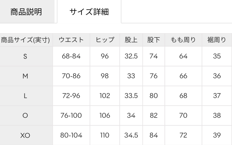 身長177~183cm  胸囲97~103cm  胴囲83~89cm