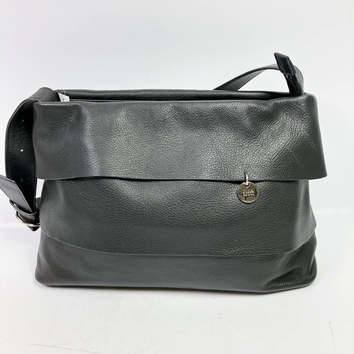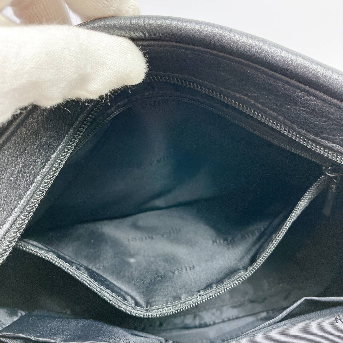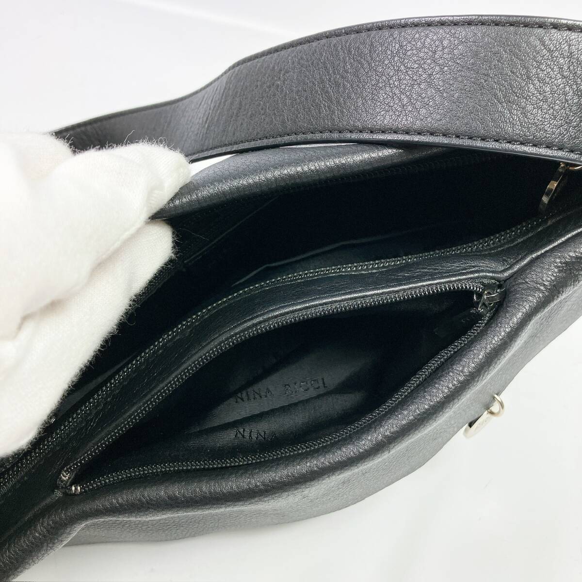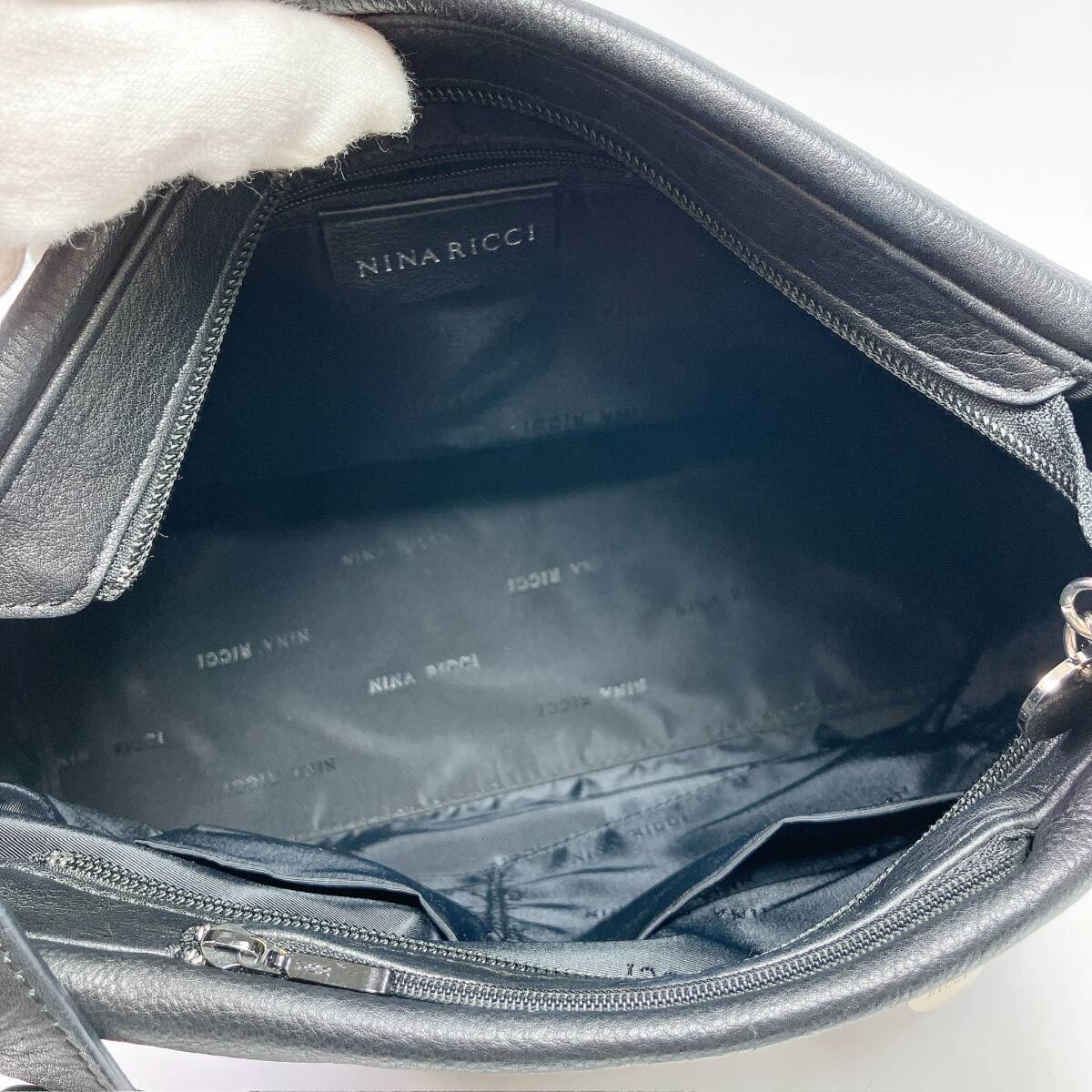 D2037◯ NINARICCI ニナリッチ ショルダーバッグ レザーバッグ ブラック 黒 シルバーチャーム フリル ファスナー レディース ポケット