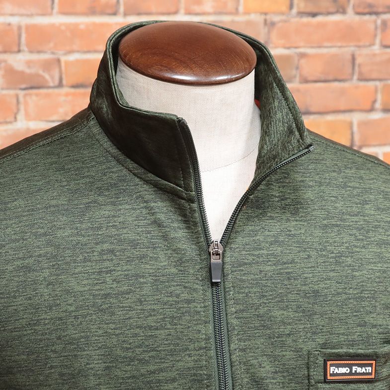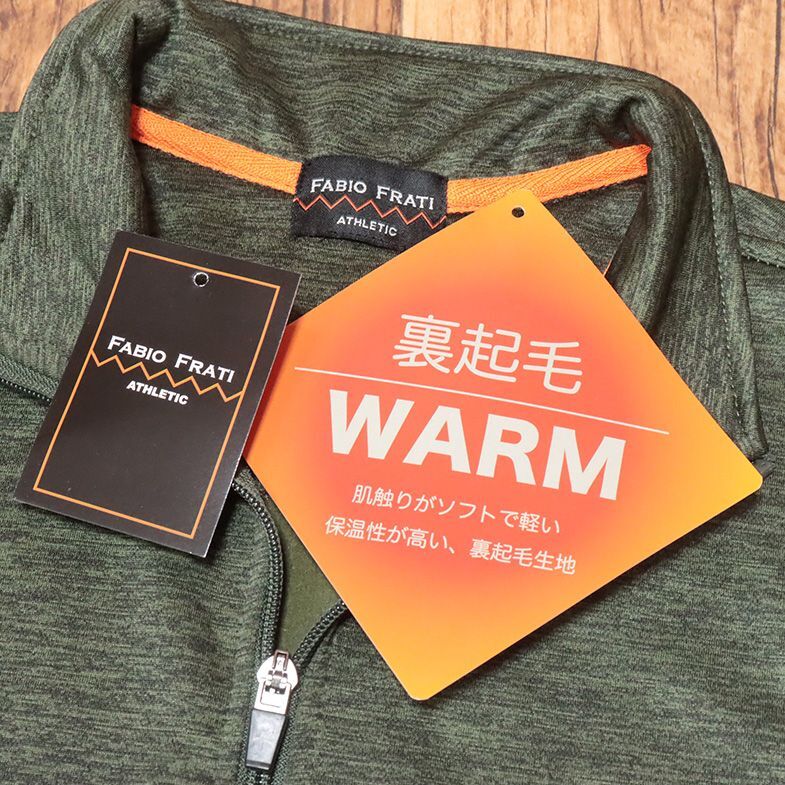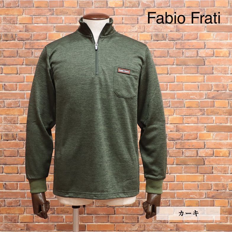 1円/秋冬/Fabio Frati/Lサイズ/ハーフジップ カットソー 裏起毛ジャージー 伸縮 保温◎ 胸ポケット ゴルフ 長袖 新品/カーキ/jt176/