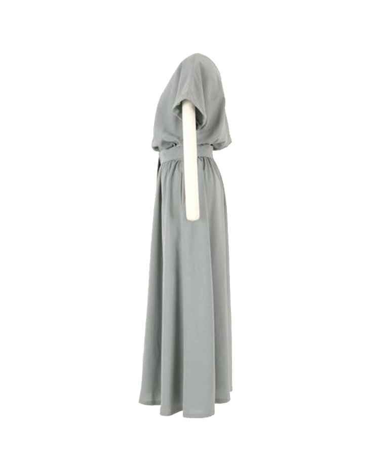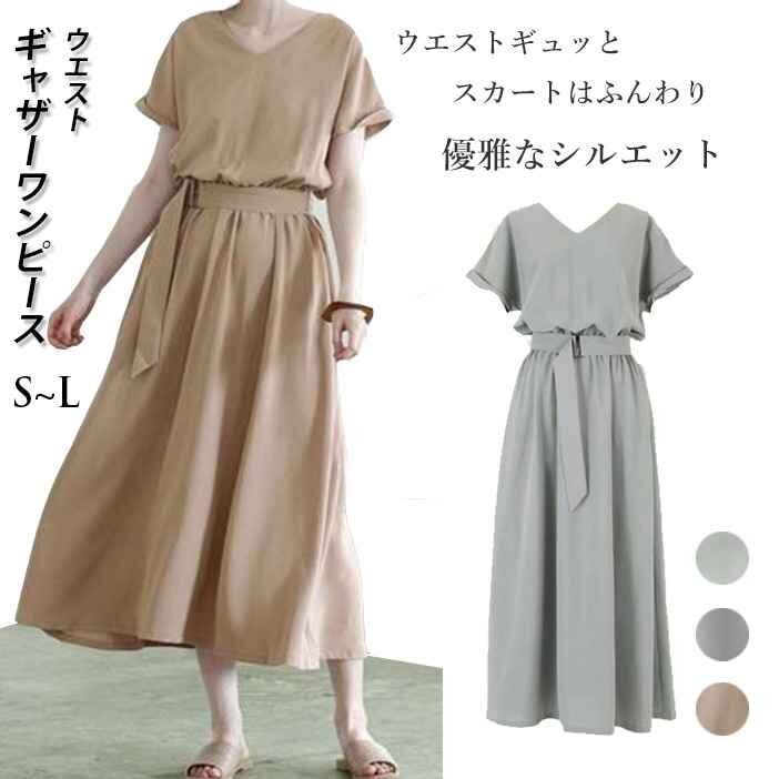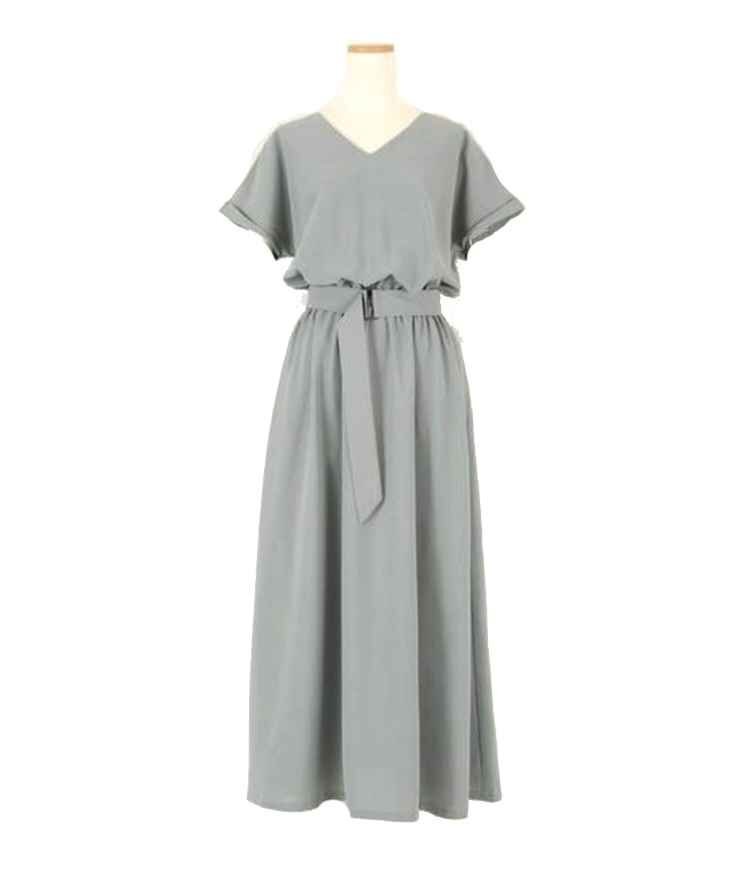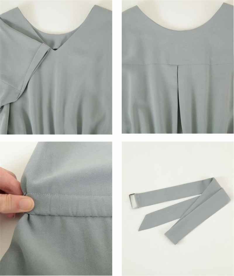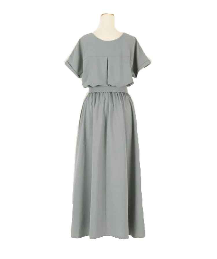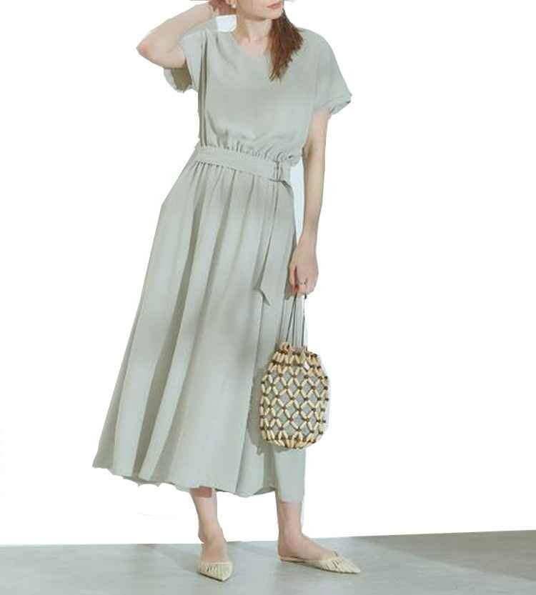 3.ウエスト回りのシャーリングでメリハリ◎優雅なシルエット