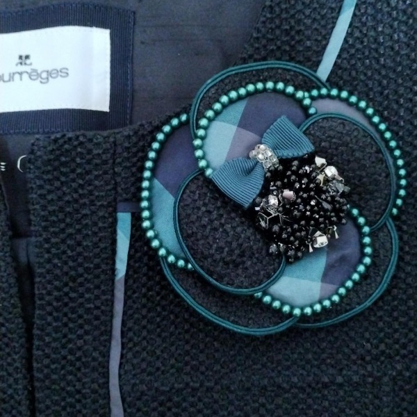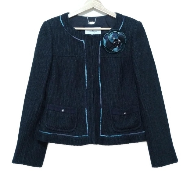 クレージュ COURREGES サイズ38 M - 黒×ダークネイビー×マルチ レディース 長袖/プローチ/春/秋 美品 ジャケット