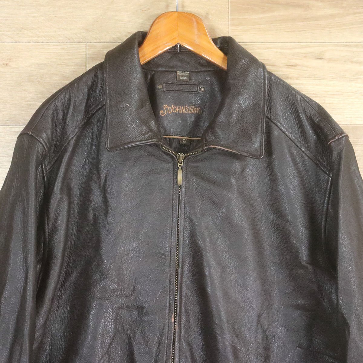 $6T/O10.15-2 アメリカ古着 ST JOHN'S BAY セントジョンズベイ レザージャケット 本革 XL シングルライダース 皮ジャン 革ジャン