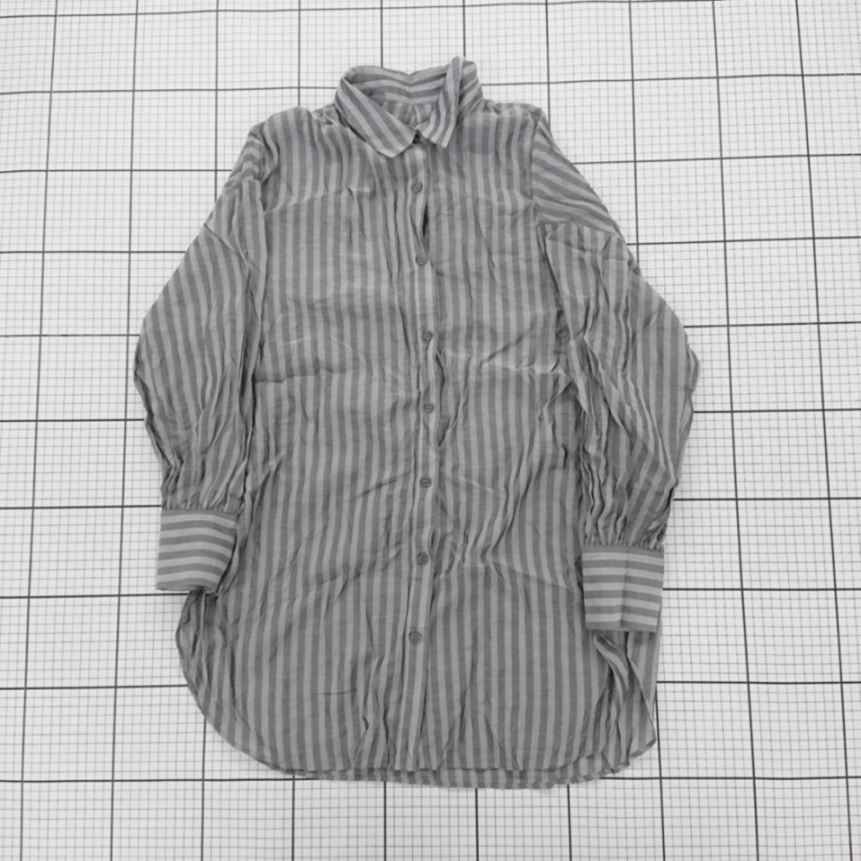 ◇ ⊂ PAGEBOY ページボーイ ストライプ 長袖 シアー シャツ サイズF グレー系 レディース E