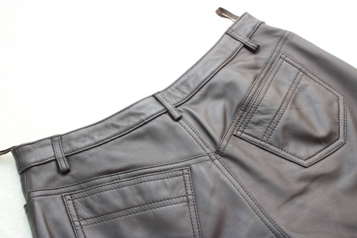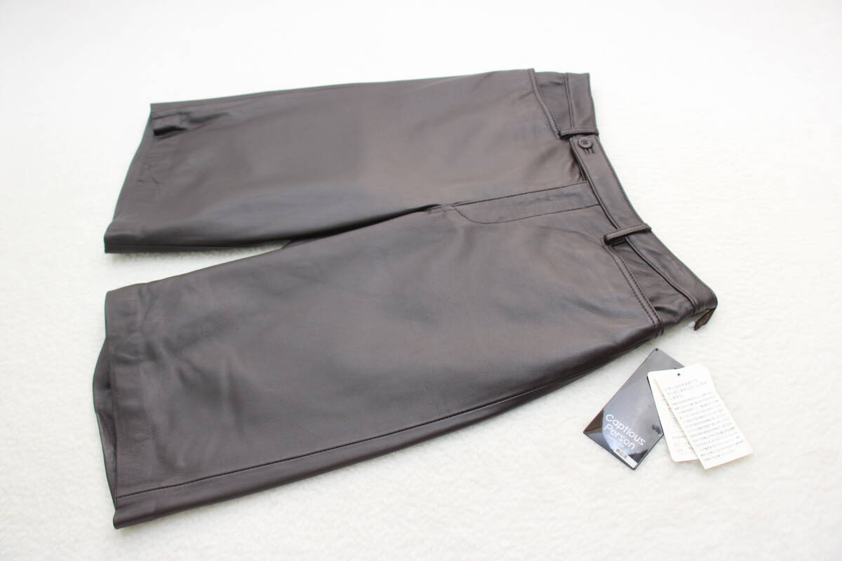 6489 新品タグ付き 高級羊革レザーショートパンツ ブラウン13号
