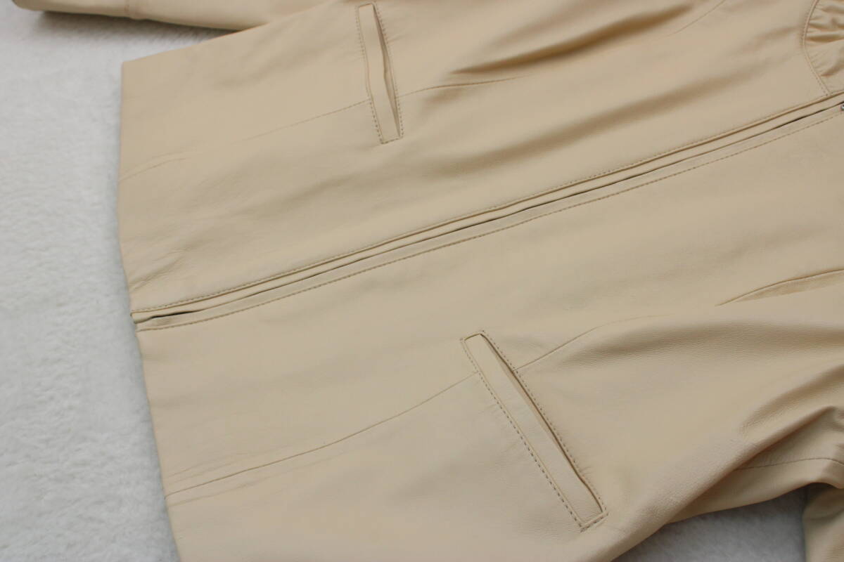 5685 新品タグ付き 高級羊革レザーノーカラーZIPジャケット ベージュ7号 定価¥59,000+税