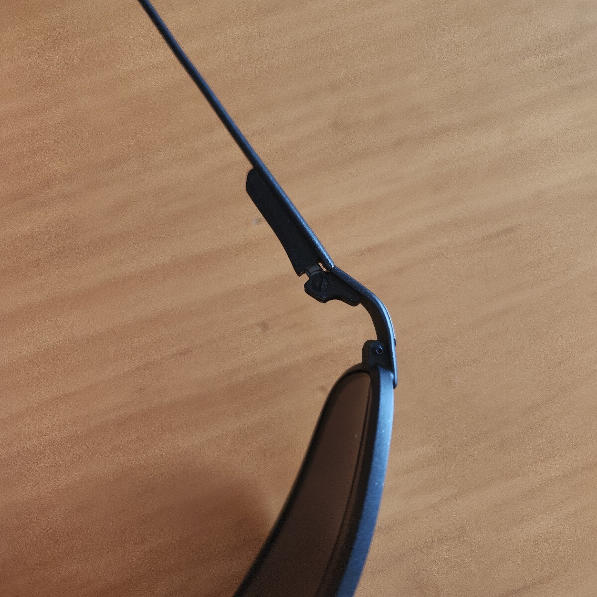 眼鏡のテンプルが外側に曲がるスプリングヒンジになっています(画像最後)