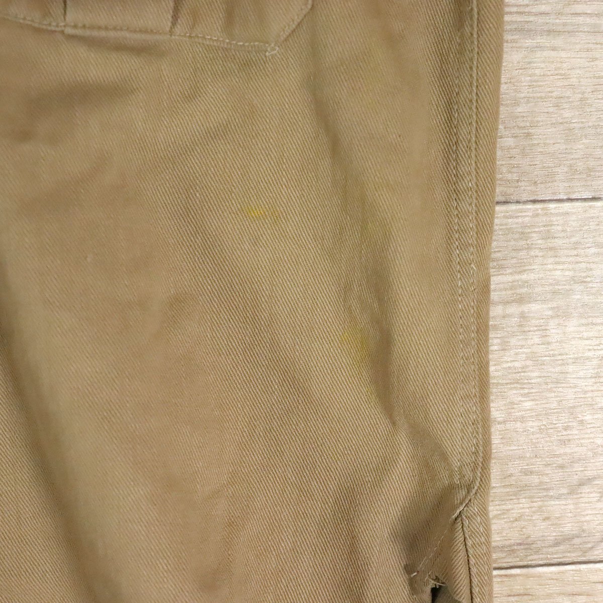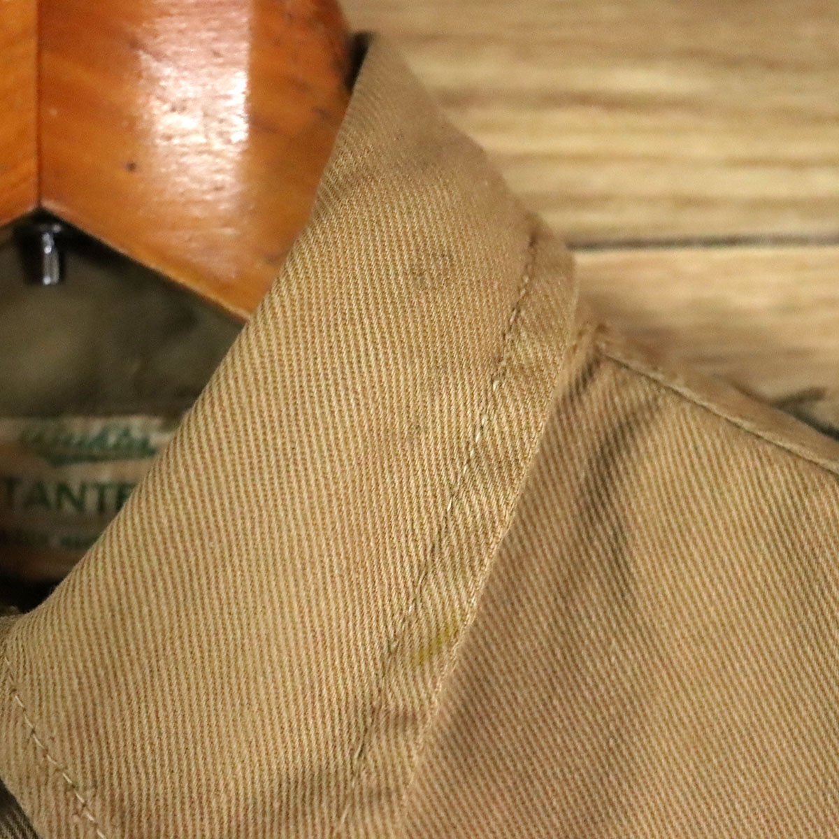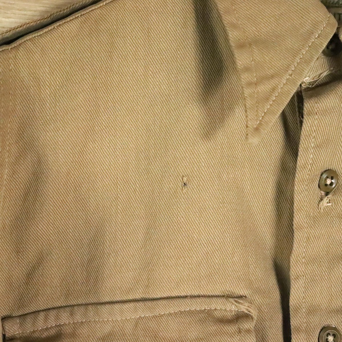 中古品です。使用感があります。右胸ポケットのボタン交換、各所に擦れ、汚れ、小穴、糸引き、ステッチにホツレがあります。