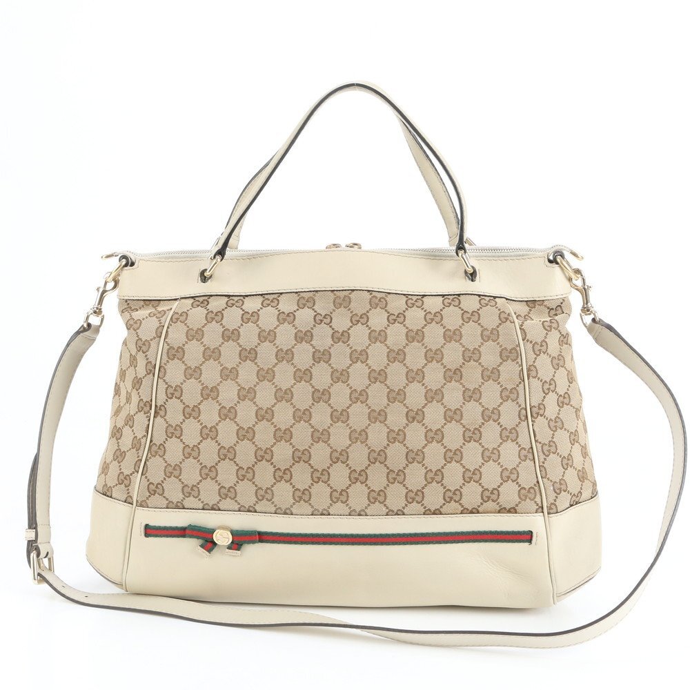1円■美品■グッチ■GG キャンバス メイフェア リボン レザー 2WAY トート バッグ 斜め掛け ショルダー 257349A4 レディース EUE CV16-4