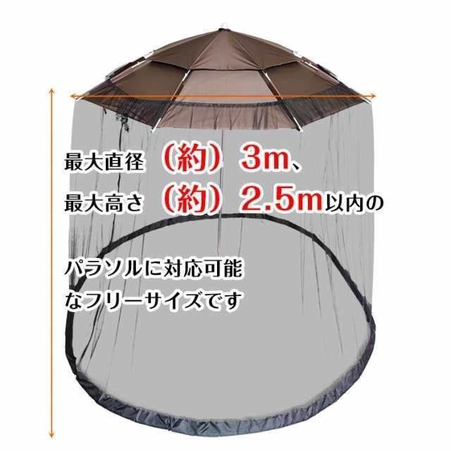 パラソル用防虫ネット 蚊帳 パラソル 簡単取付 ファスナー式 メッシュ 虫 蚊 防止 快適 調整可能 コンパクト