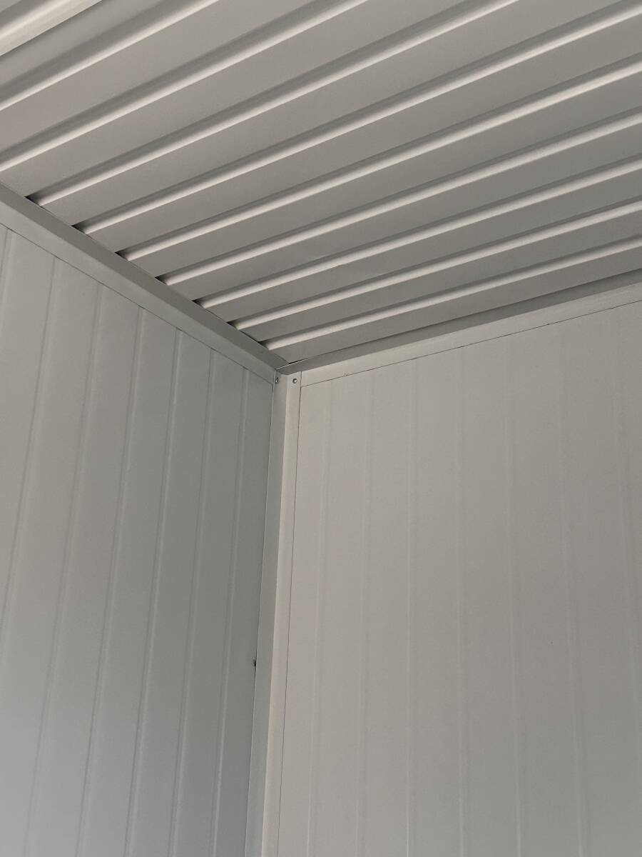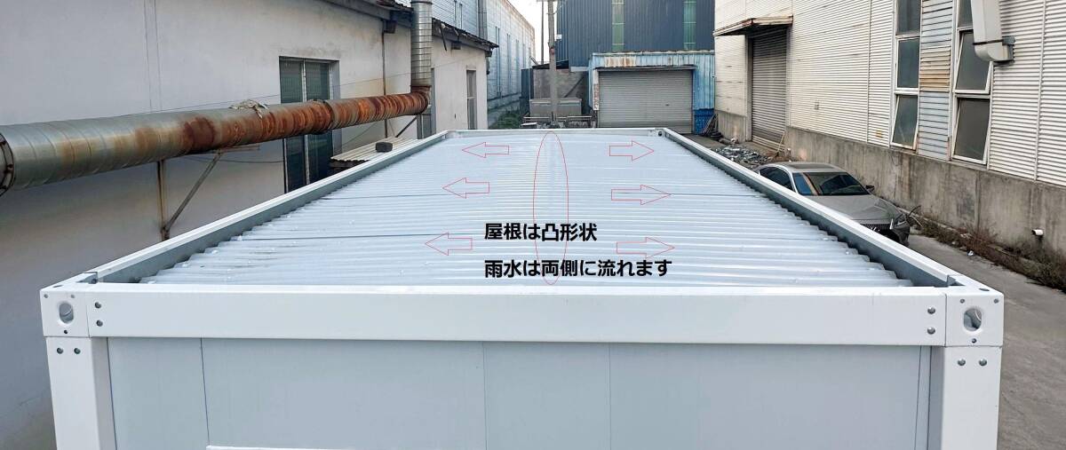 屋根の断熱材には防火性能に抜群なガラスウールを敷いています。屋根板は厚さ 0.4mmのガルバリウム鋼板で、雨漏りや風雨に強く、長期的な使用に耐えます。