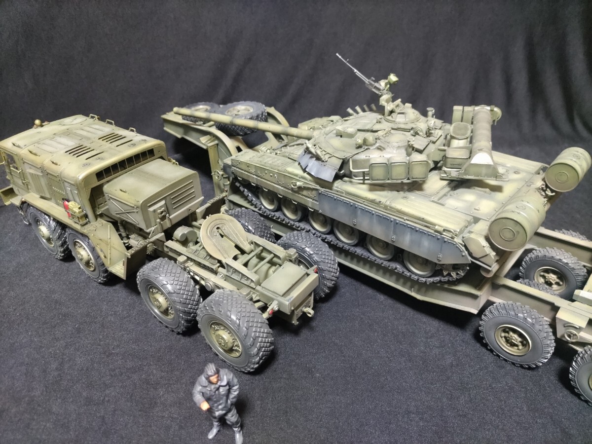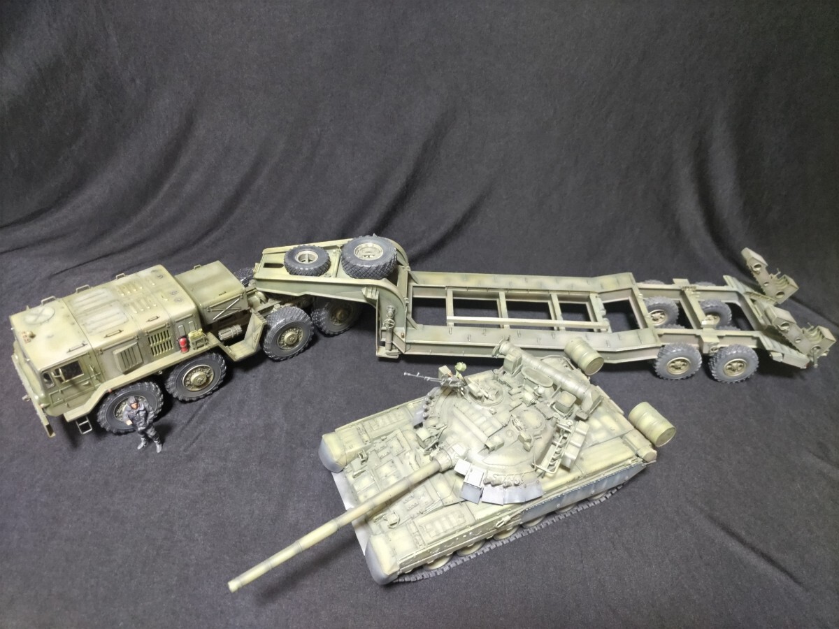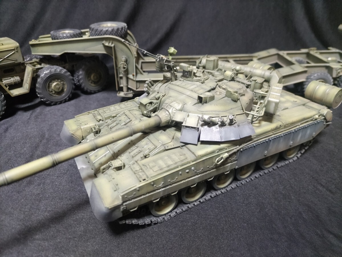 戦車単体でも鑑賞に堪える物にしています。トレーラーに載せた状態でもトレーラーとの統一感を意識しました。