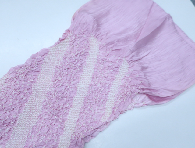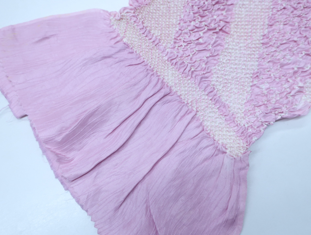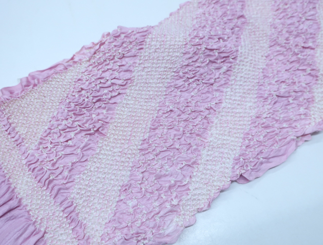 リサイクル商品のため、帯揚げにシボ伸びや端にほつれ、耳に色褪せがございますが、ご使用頂けると存じます。 |