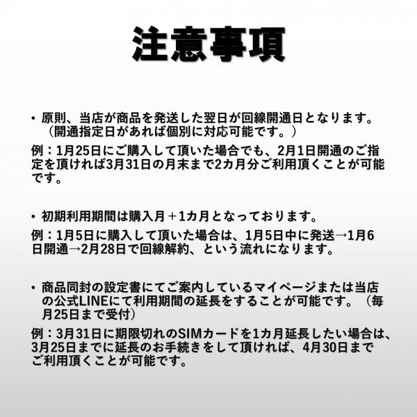 当店のSIMカードを悪用目的・犯罪目的でのご購入はお辞めください。
