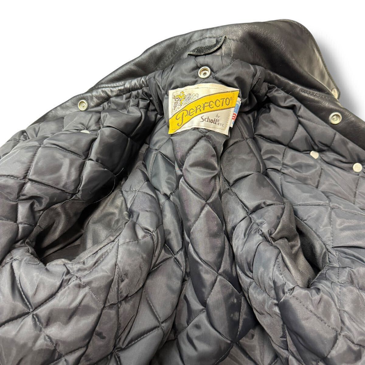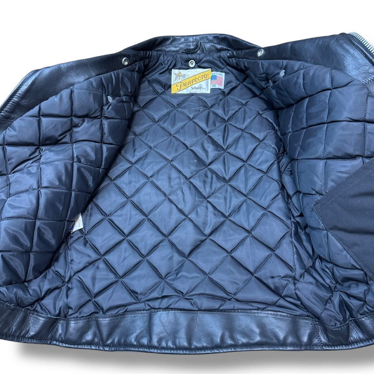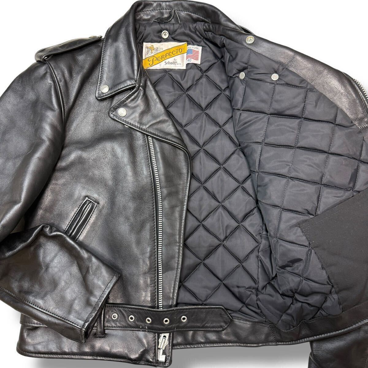 1479 希少XL相当!!美品 Schott ショット ダブルライダースジャケット 革ジャン 618 レザー 牛革 キルティング 40 USA製 黒 ブラック