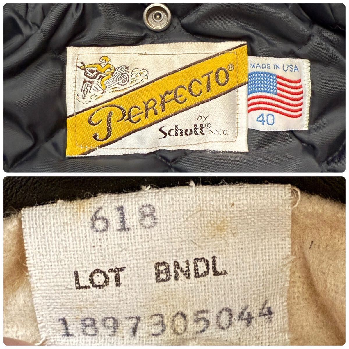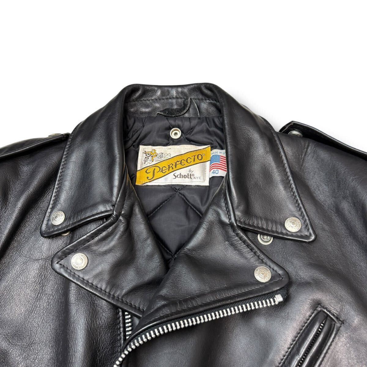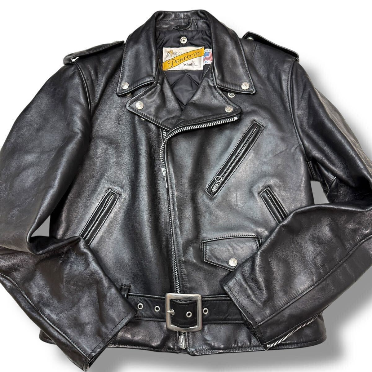 1479 希少XL相当!!美品 Schott ショット ダブルライダースジャケット 革ジャン 618 レザー 牛革 キルティング 40 USA製 黒 ブラック