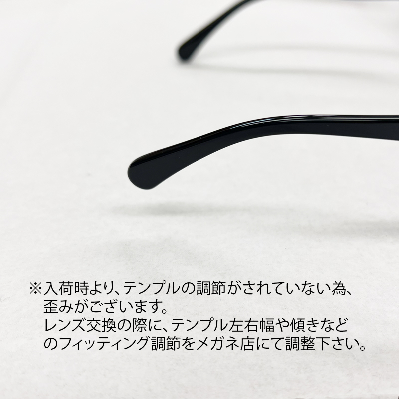 ※入荷時より、テンプルの調節がされていない為、歪みがございます。レンズ交換の際に、テンプル左右幅や傾きなどのフィッティング調節をメガネ店にて調整下さい。