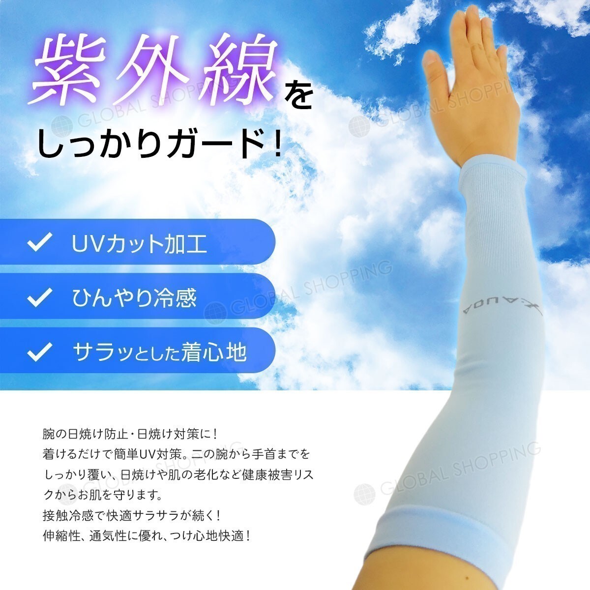 手首から腕までしっかり覆うロングタイプなので日焼け対策に最適!
