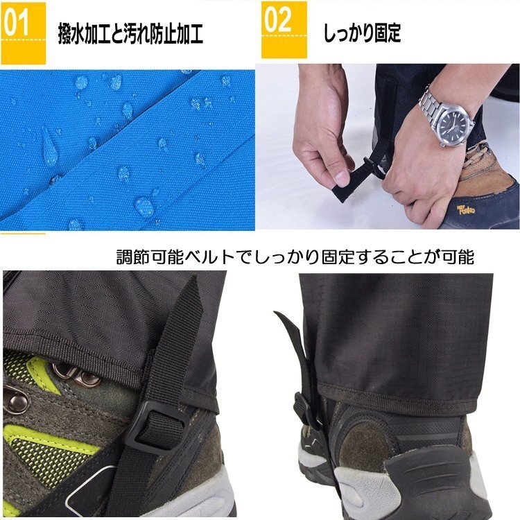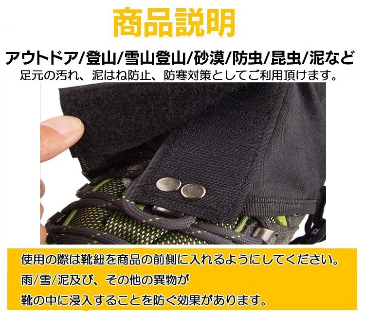 ◆登山ゲイター 撥水加工 ロングスパッツ トレッキング 泥除け 雨よけ 悪天候対策 アウトドア 男女兼用 スパッツ 防寒対策 登山、スキー、雨、雪の日にお勧め 左右セットLUCKL455