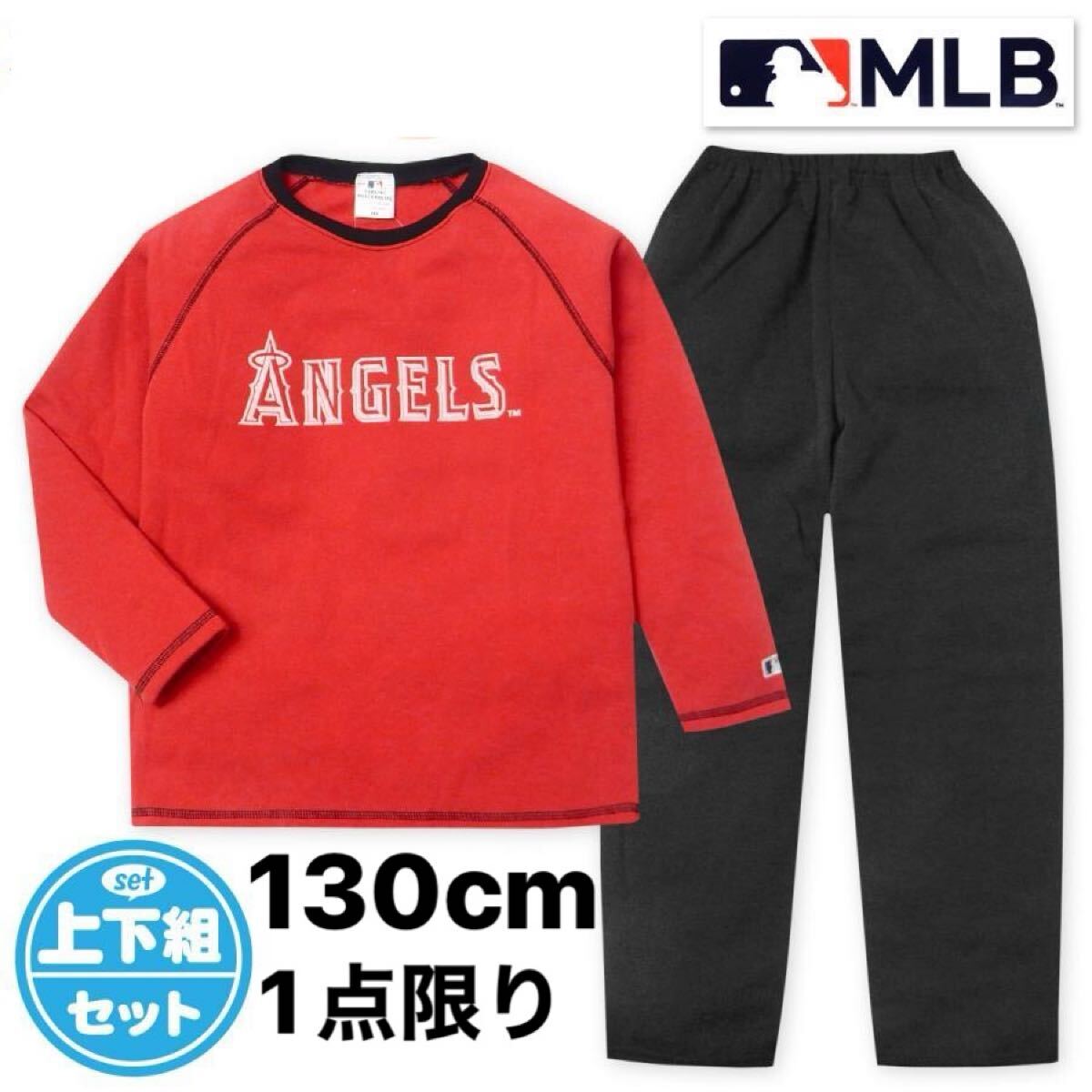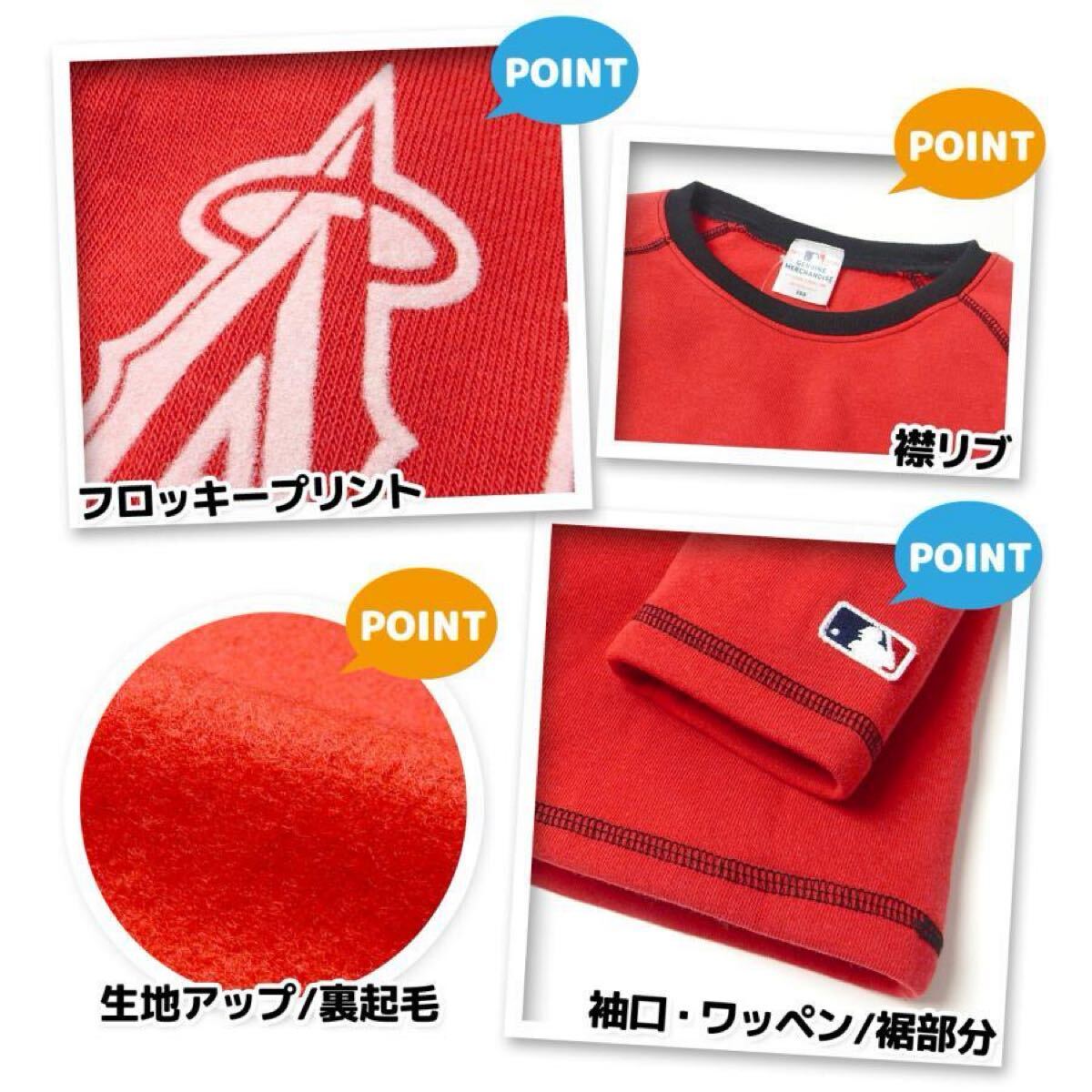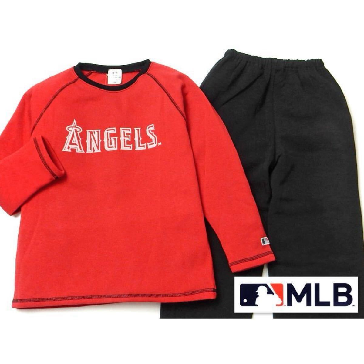 新品64674 130cm レッド MLB エンゼルス キッズジュニア ボーイズ ニット裏フリース丸首長袖パジャマ ルームウェア あったか素材