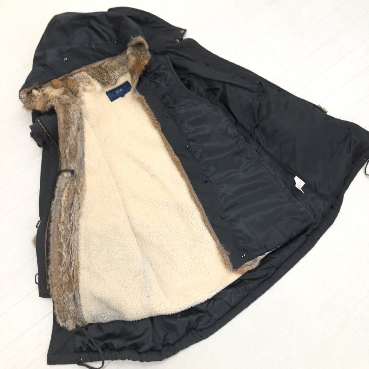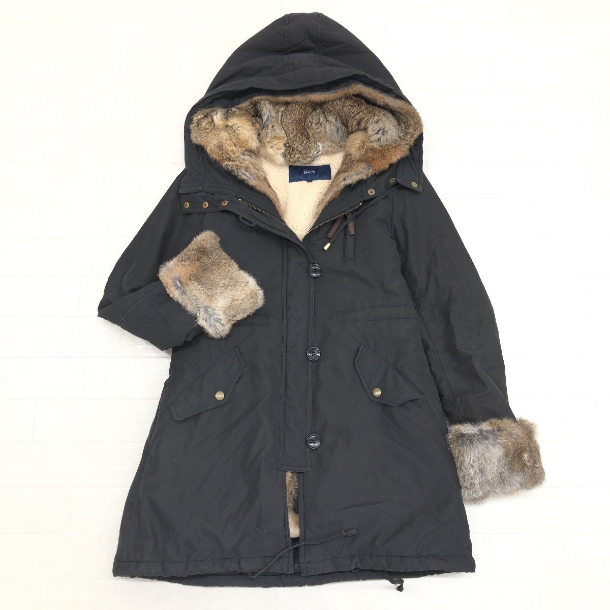 ◆SHIPS シップス 定価36,750円 ラビットファーライナー モッズコート 36 黒 ブラック 裏ボア ボアライナー 国内正規品 レディース 女性用