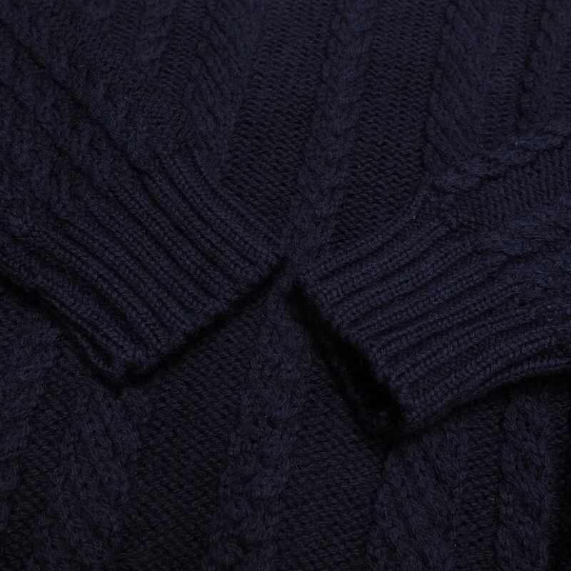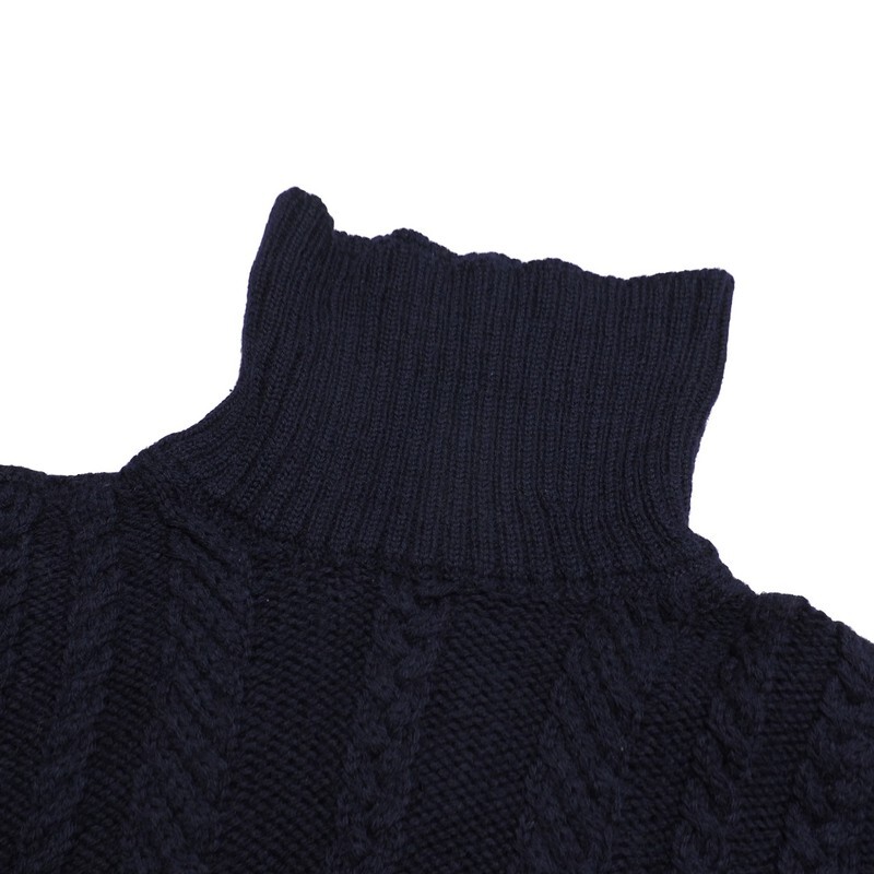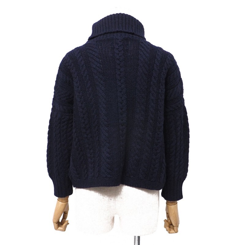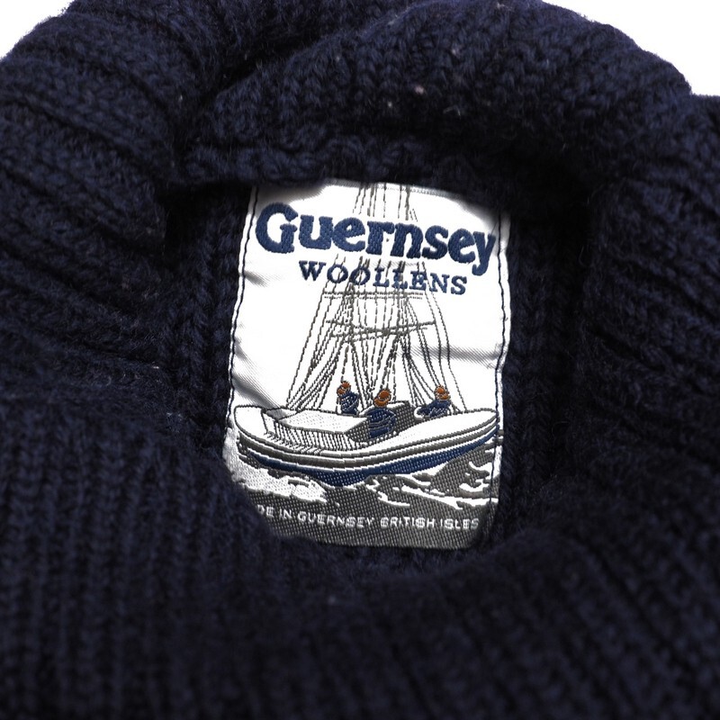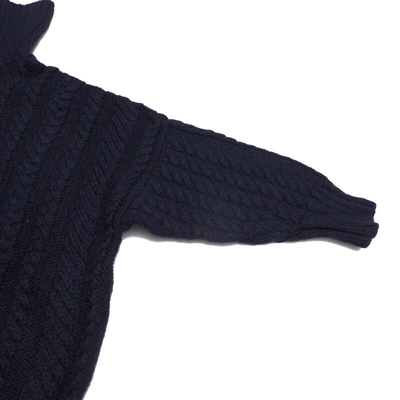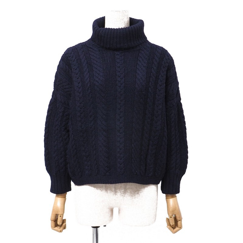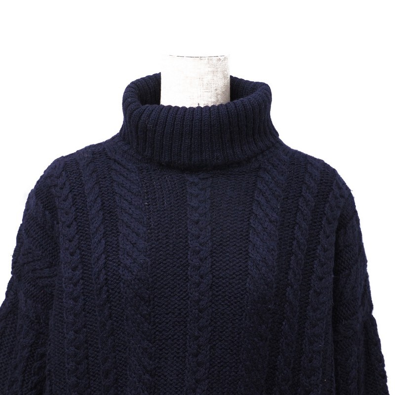 | TI6517▼イギリス製*ガンジーウーレンズ Guernsey WOOLLENS*ウール ケーブル編み タートルネックセーター サイズ34 ネイビー系 | |||