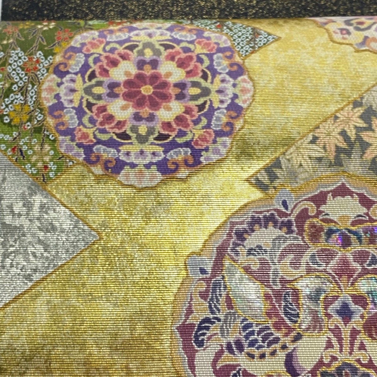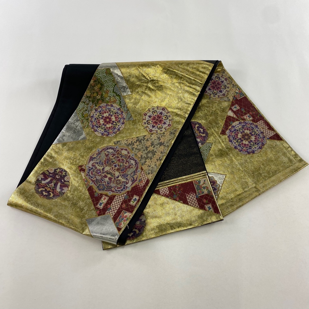 | 袋帯 美品 名品 向かい鳥 華文 螺鈿箔 金彩 金色 お太鼓柄 正絹 【中古】 |