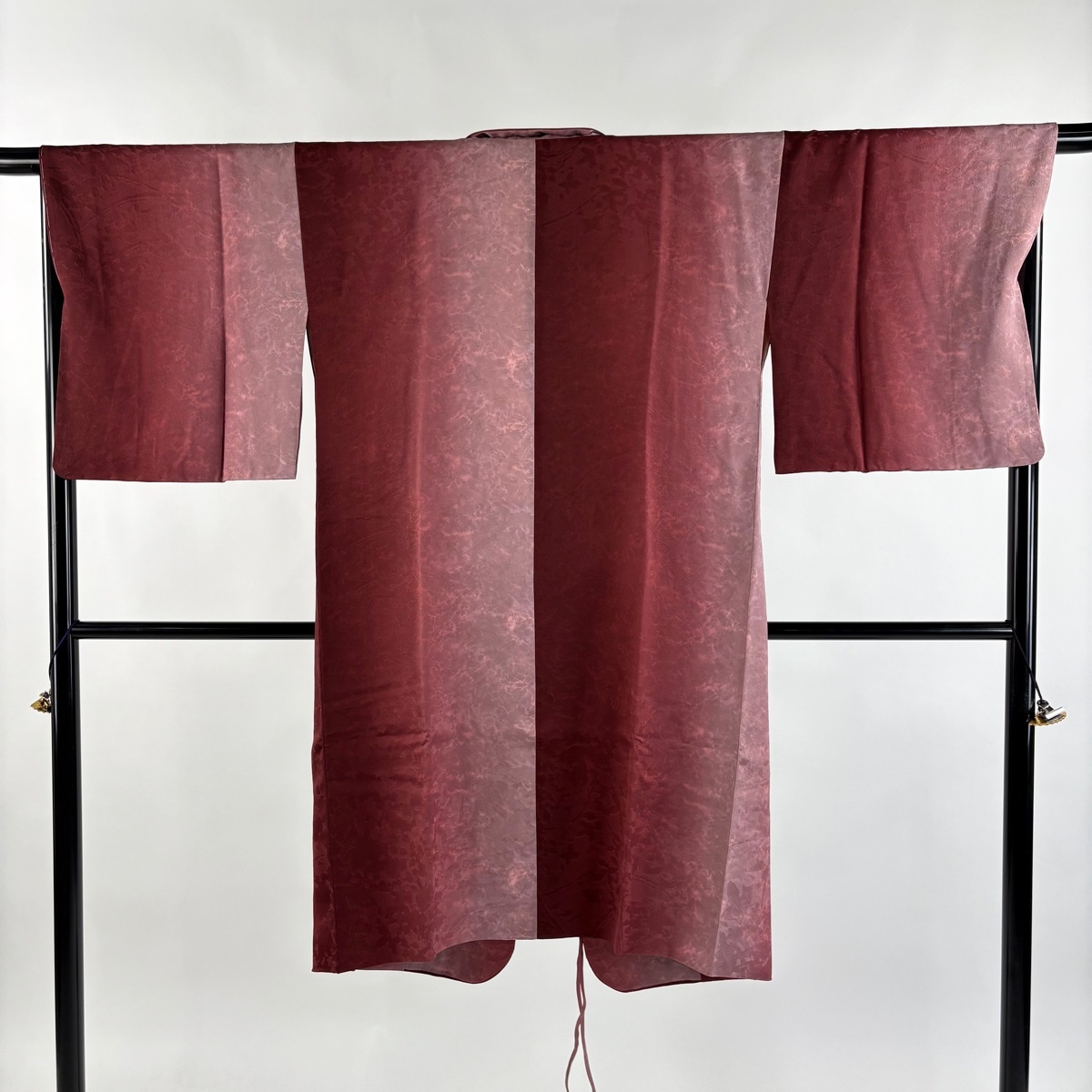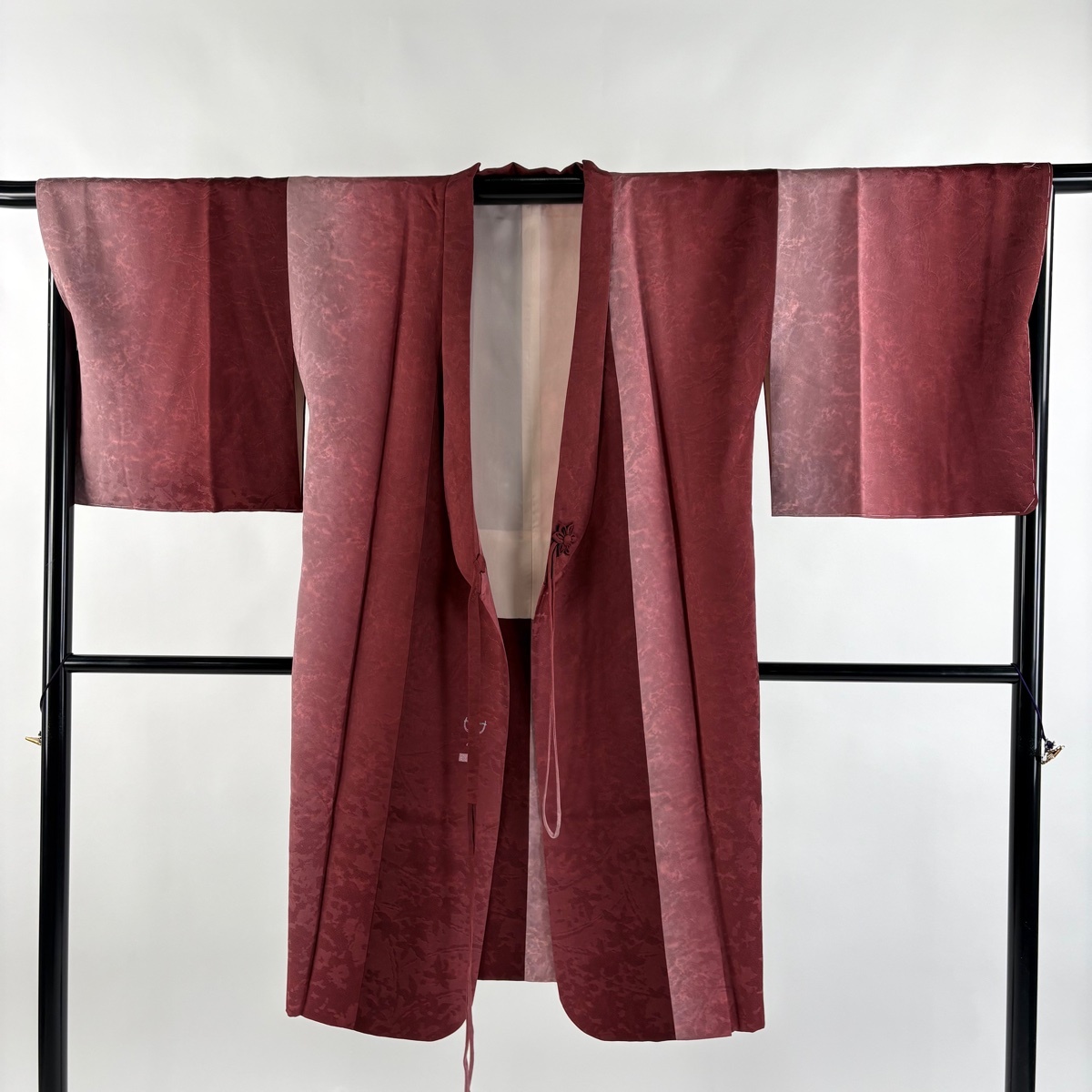 | 道中着 美品 逸品 落款 和装コート へちま衿 地紋 ぼかし 茜色 身丈110 裄丈66 M 正絹 【中古】 |