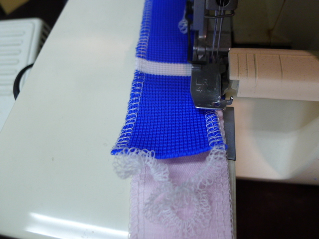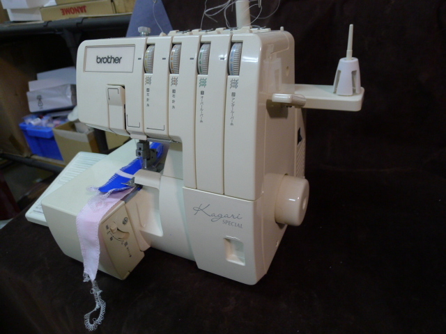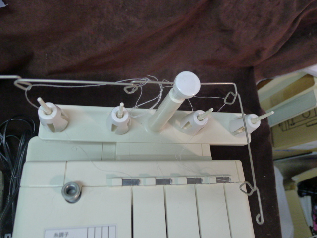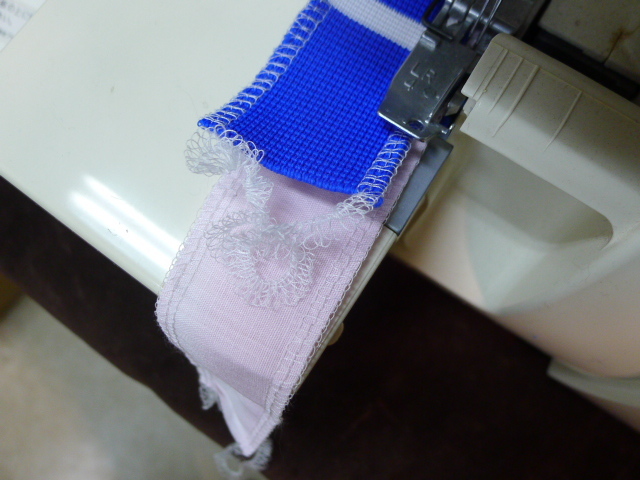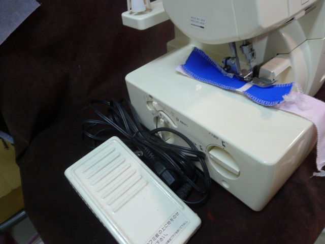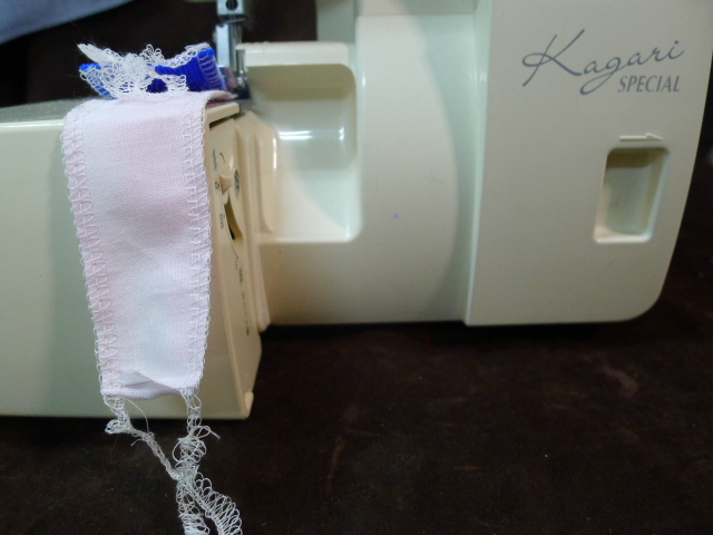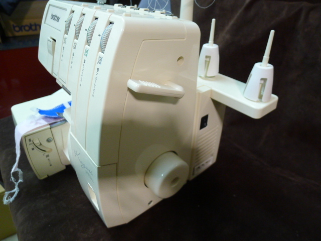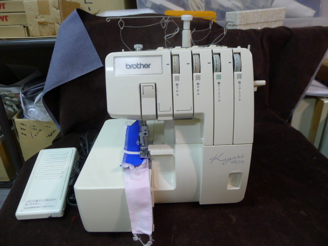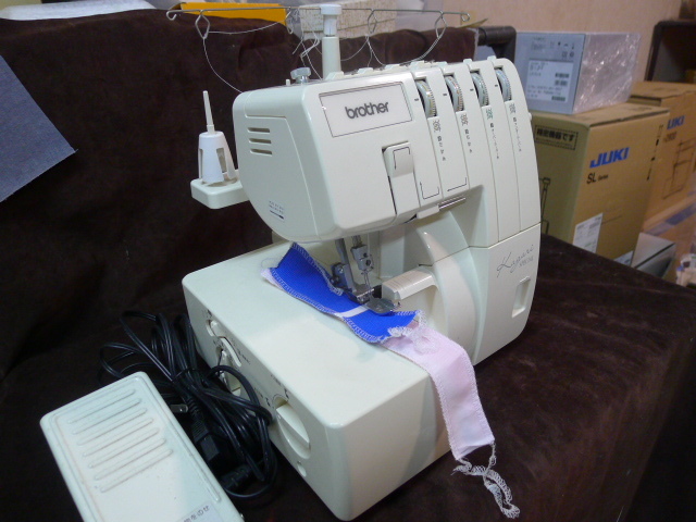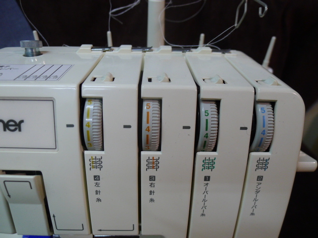 4本ロックで普通生地、ニット生地で試し縫いをしています。