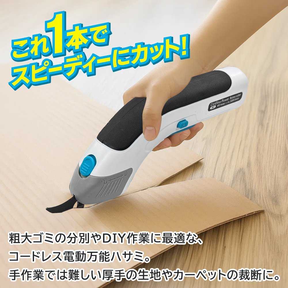| 布や革を電動でラクラクカット! 充電式だからどこでも使える♪ |