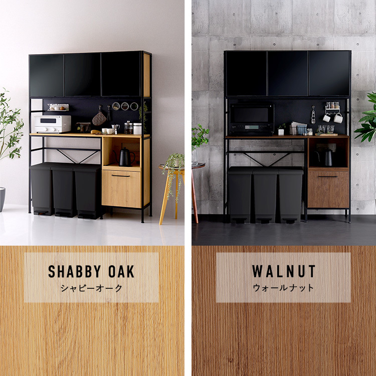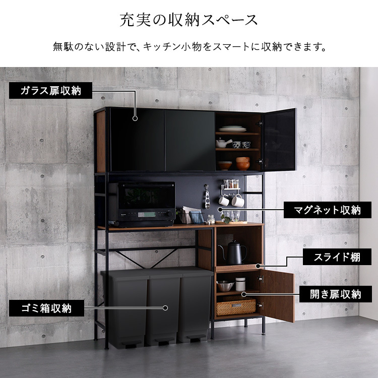 ヴィンテージ調マグネットゴミ箱上レンジラック ブラックガラス GREACK-グリック- ウォールナット