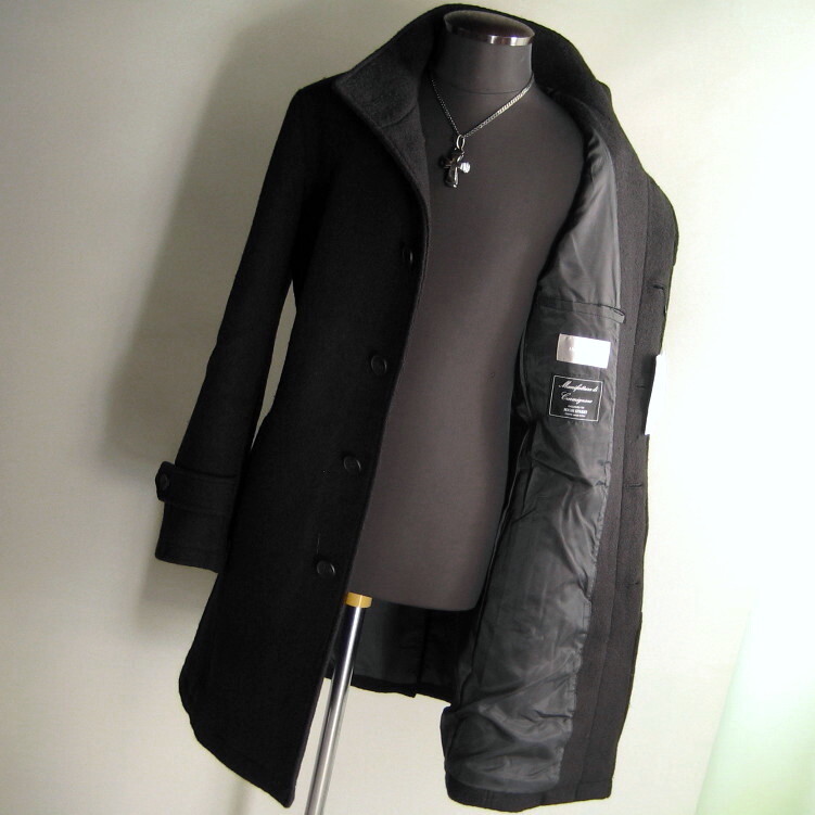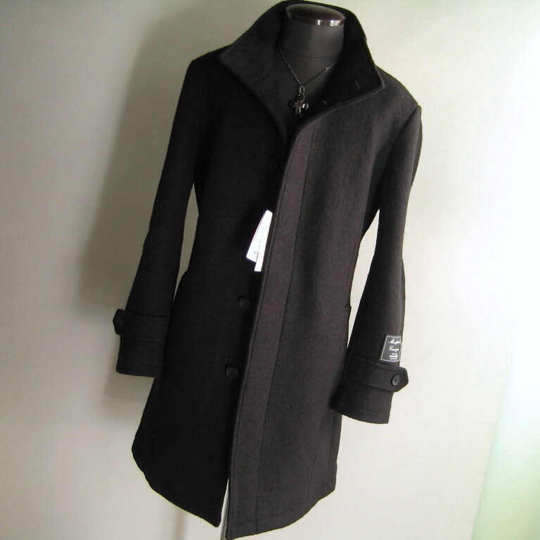 5.4万 新品 ハイストリート L CARMIGANO スタンドカラーコート イタリア生地 ブラック 171