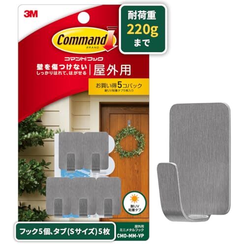 3M コマンド フック キレイにはがせる 屋外用 すだれ 壁 ミニメタル 5個 大容量パック CMO-MM-VP