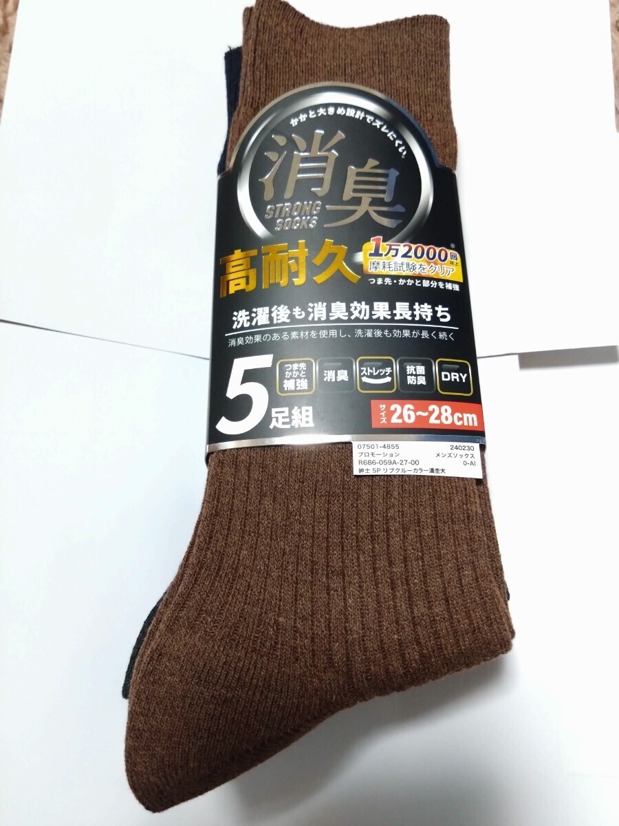 ④メンズ ソックス 5足組 サイズ26~28cm つま先、かかと補強 ストレッチ 消臭 抗菌防臭 DRY 洗濯後も消臭効果長持ち