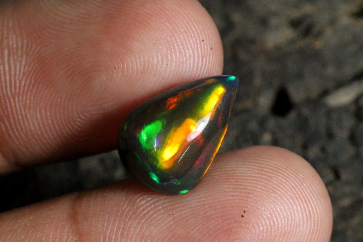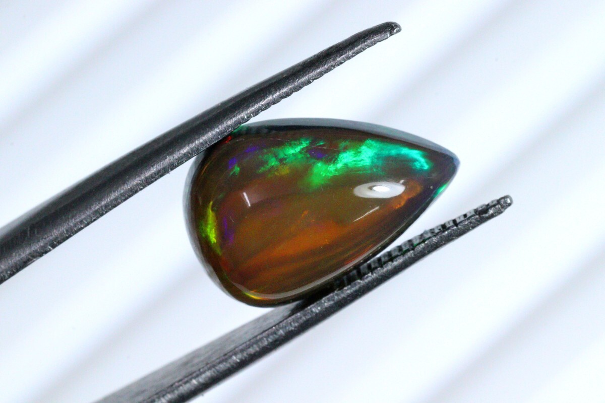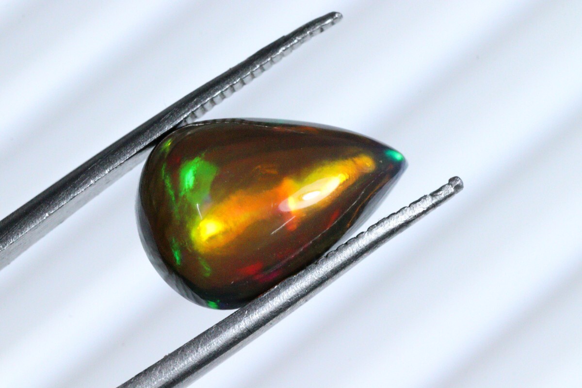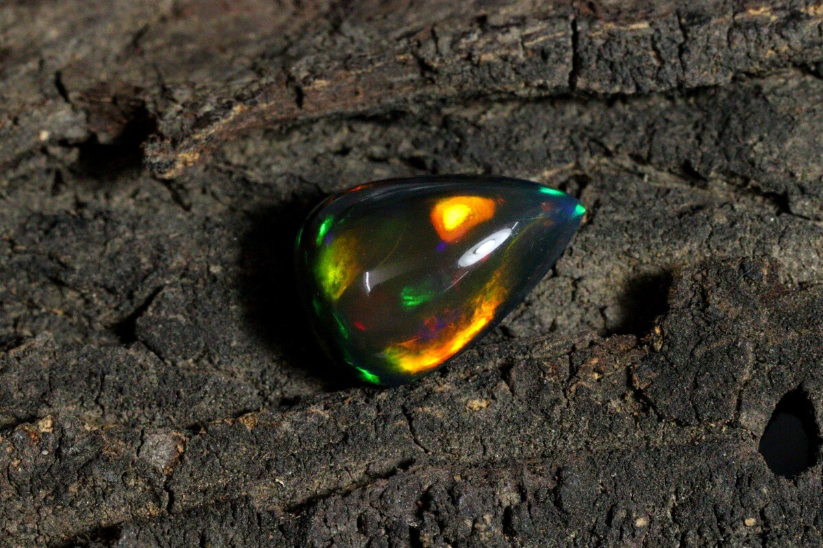 ※処理ブラックオパールは、色を強調するために処理が施された天然オパールです。エチオピア産オパールは通常、明るい色や半透明の状態で産出されますが、深い黒色にするために処理が行われます。