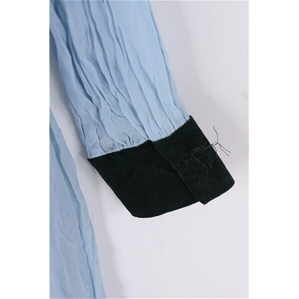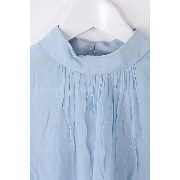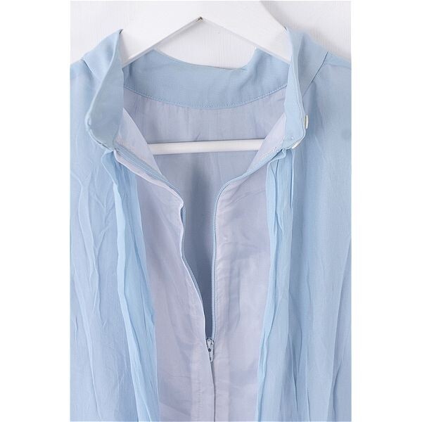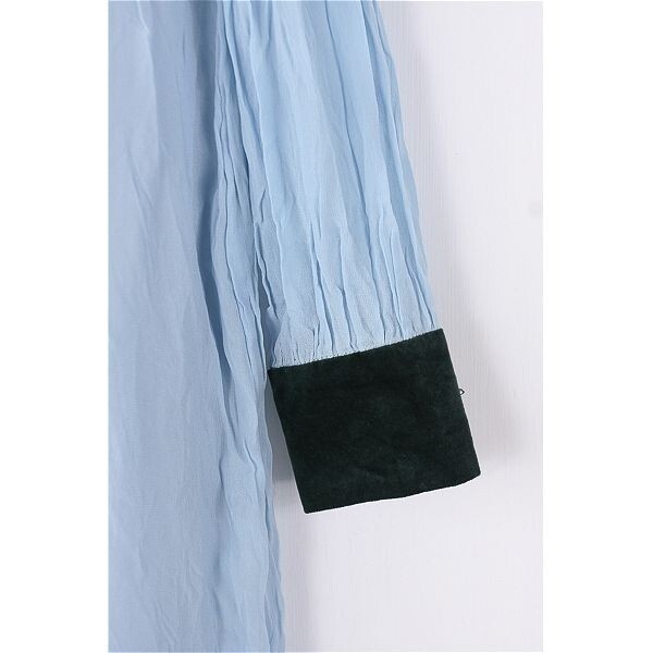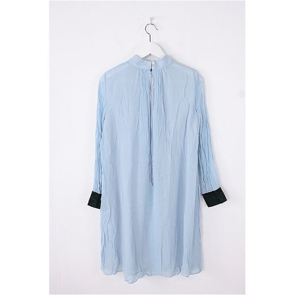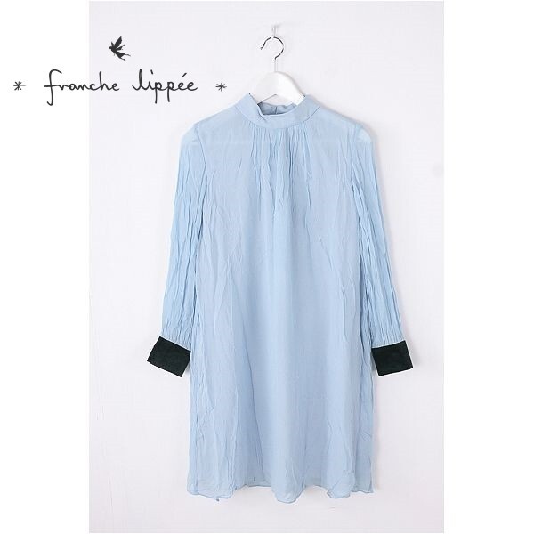 A3957/美品 春夏 franche lippee フランシュリッペ レーヨン100% 長袖 ゆったり フレア Iライン ミモレ丈 膝丈 ワンピースM水色/レディース