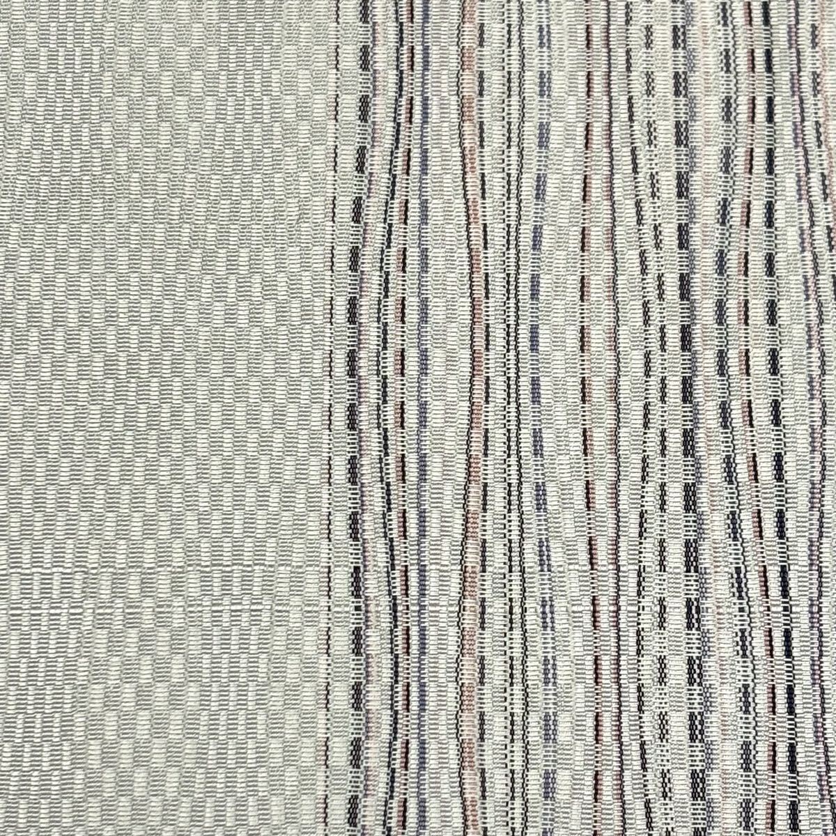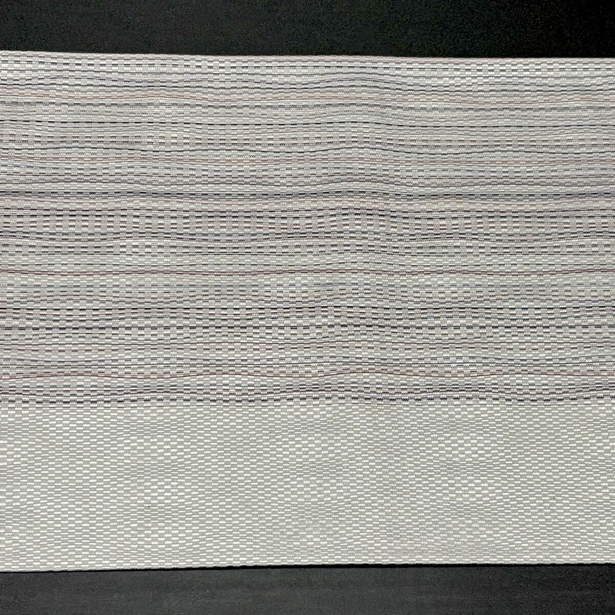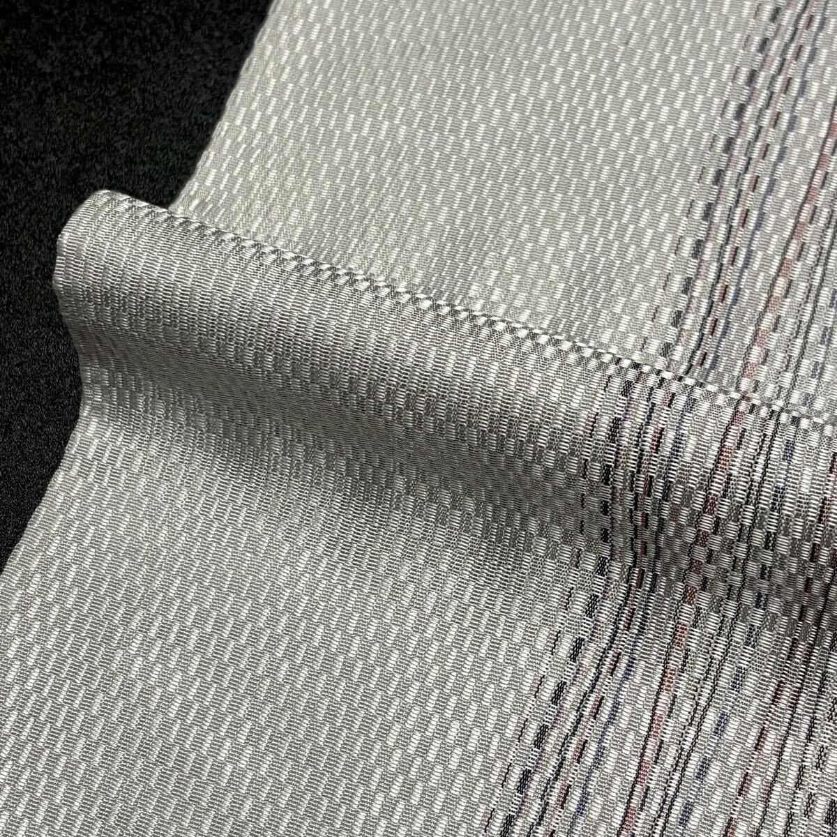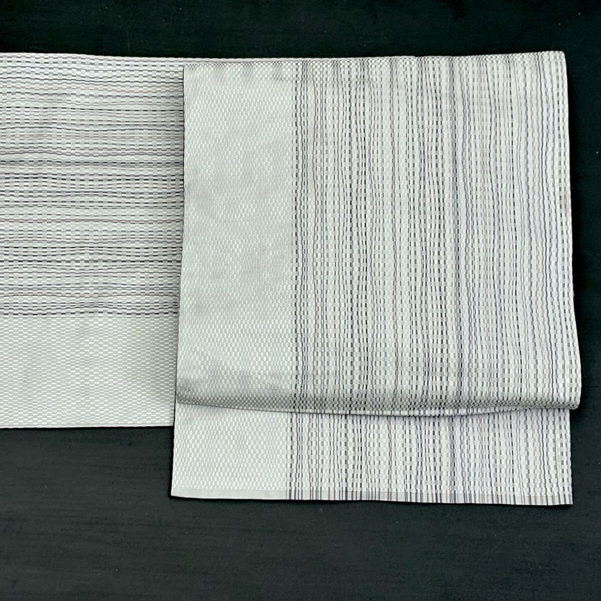 グレー地にライン模様が入った、洗練されたデザインの京袋帯です。
