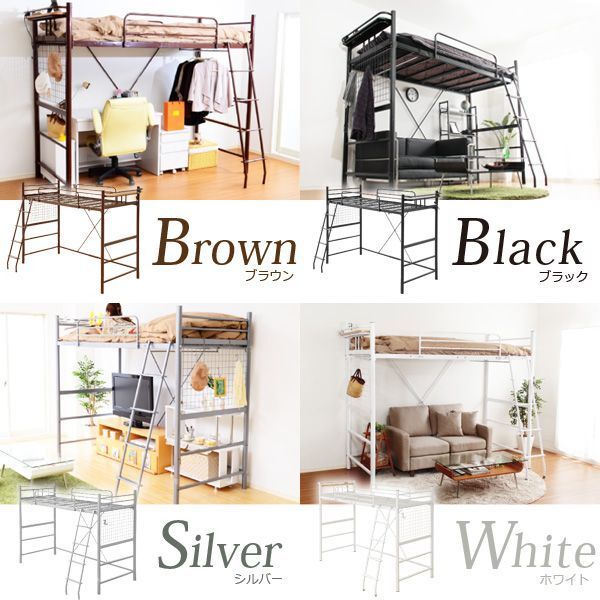 【ポイント】 ①ベッドが便利空間に早替わり! 高さ調整可能のロフトベッドです。 ②高さ調整可能のロフトベッド!ハイタイプ・ミドルタイプに高さ調整可能です。 ③さらにコンセント付きの宮棚付き! 極太パイプを採用でさらに安心・安全です。 ④カラーは選べる4色展開です。 |