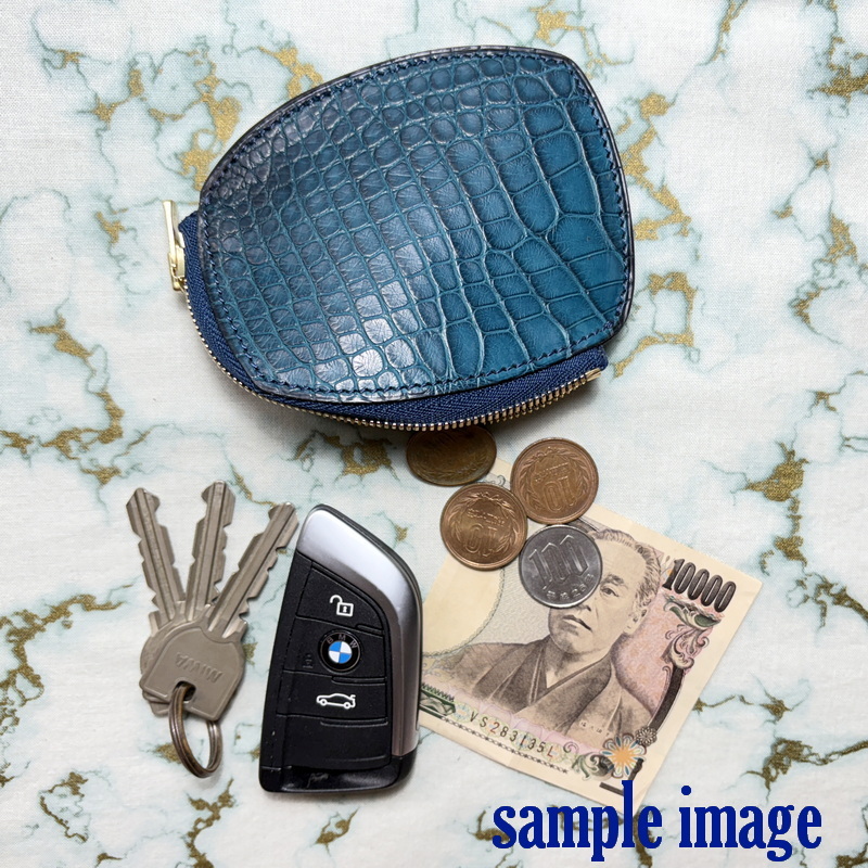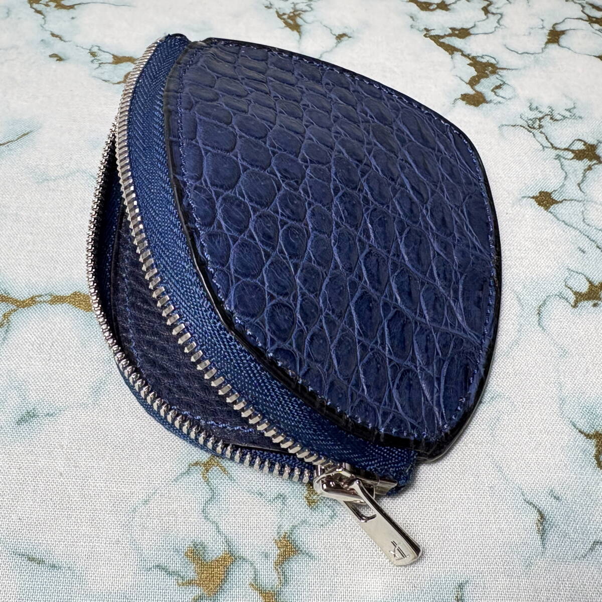 ポロサスレザー(ウルトラマリン) firebird【シンメトリー:ファスナーミニポーチ】男女兼用【高級仕様】プレゼントにも! スモールクロコ