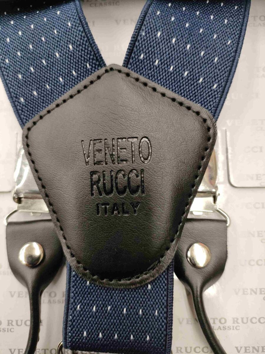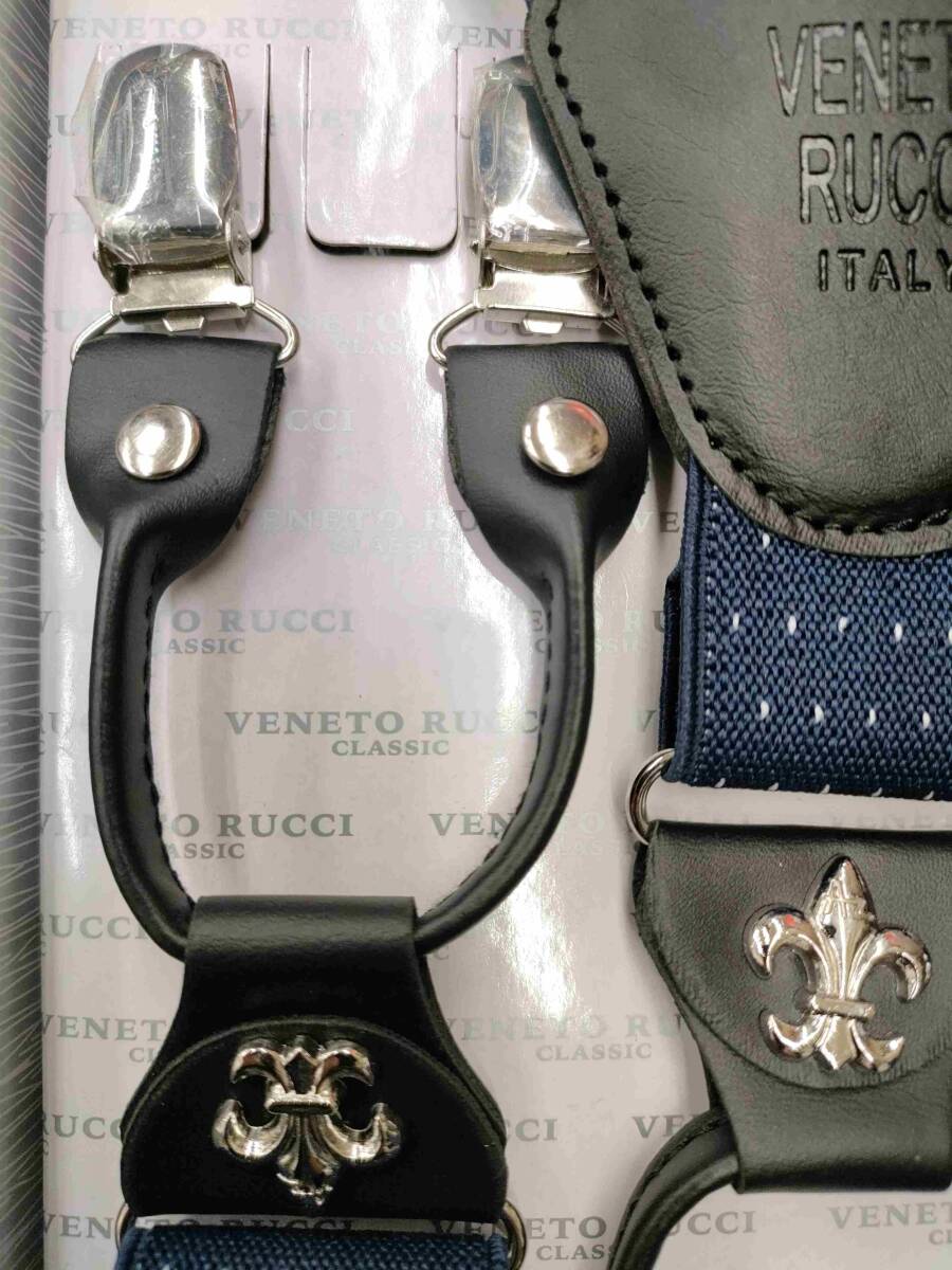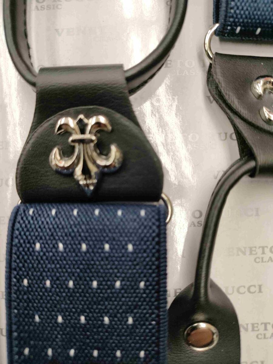 最高級サスペンダー オールダブルクリップ ベルト幅34mm ネイビードット Y型 化粧箱入り カッコイイ イタリアライセンス品
