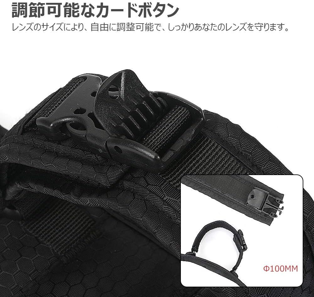 さらに、高密度ナイロン素材を採用しており、衝撃に対して非常に耐久性があります。また、メッシュ生地を使うことでカメラとレンズに傷をつけず、触り心地がよく、見た目もおしゃれです。