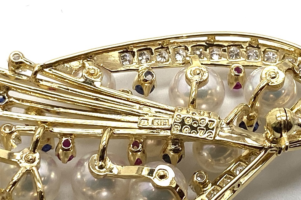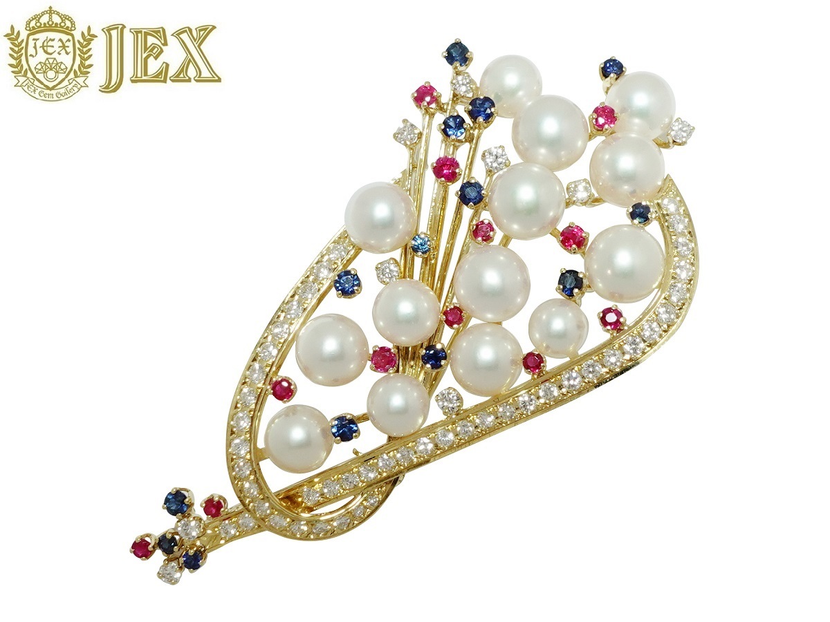 | 品名 | MIKIMOTO 【ミキモト】 K18アコヤパール ダイヤモンド ルビー サファイヤブローチ |