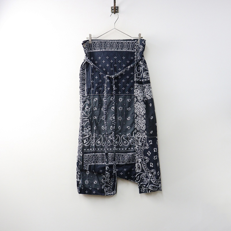 キャピタル KAPITAL ガーゼバンダナパッチワークラップパンツ L|ブラック ボトムス ペイズリー【2400014650921】