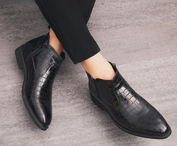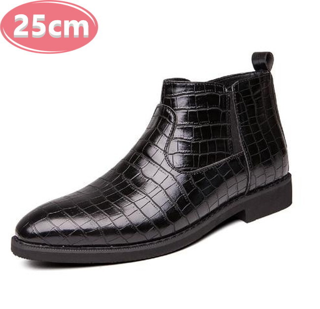 サイドジッパー メンズ ビジネスワニ柄 PUレザー シューズ ブラック 25.0㎝ 革靴 靴 カジュアル 屈曲性 通勤 軽量 インポート品【n157】