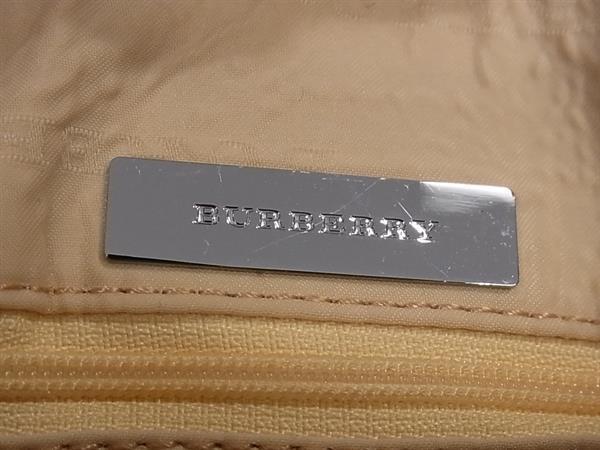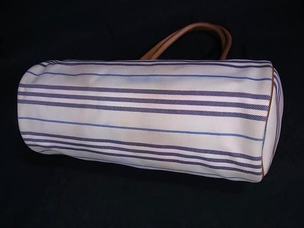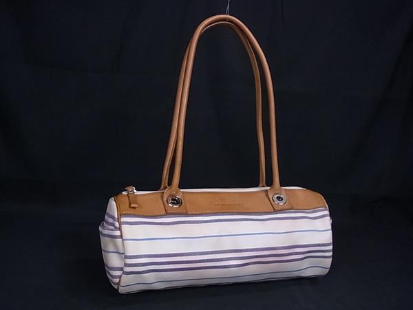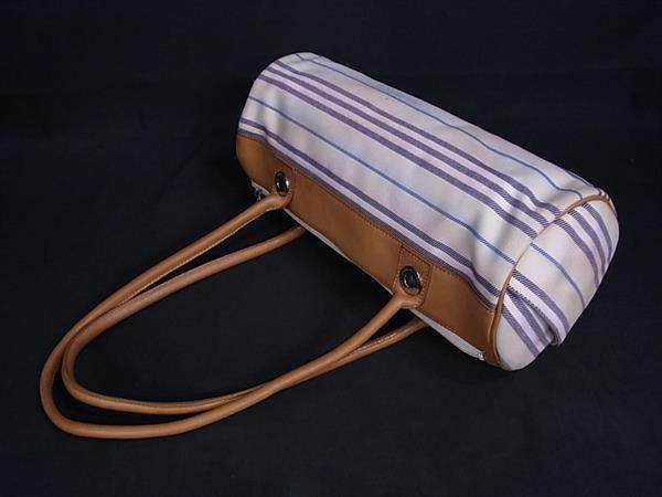 1円 BURBERRY バーバリー キャンバス×レザー ボーダー トートバッグ ショルダー 肩掛け レディース アイボリー系×ブラウン系 FS7518