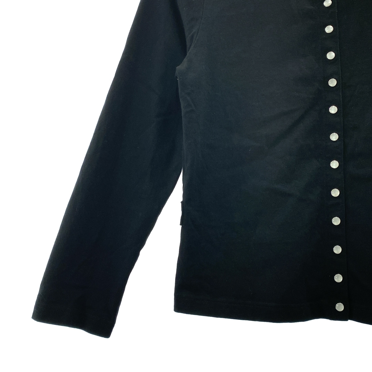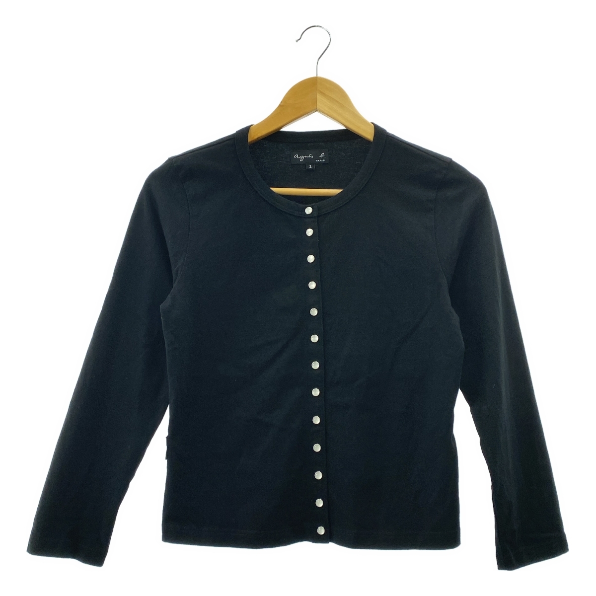Agnes b. / アニエスベー | プレッション コットン クルーネック カーディガン | 2 | ブラック | レディース