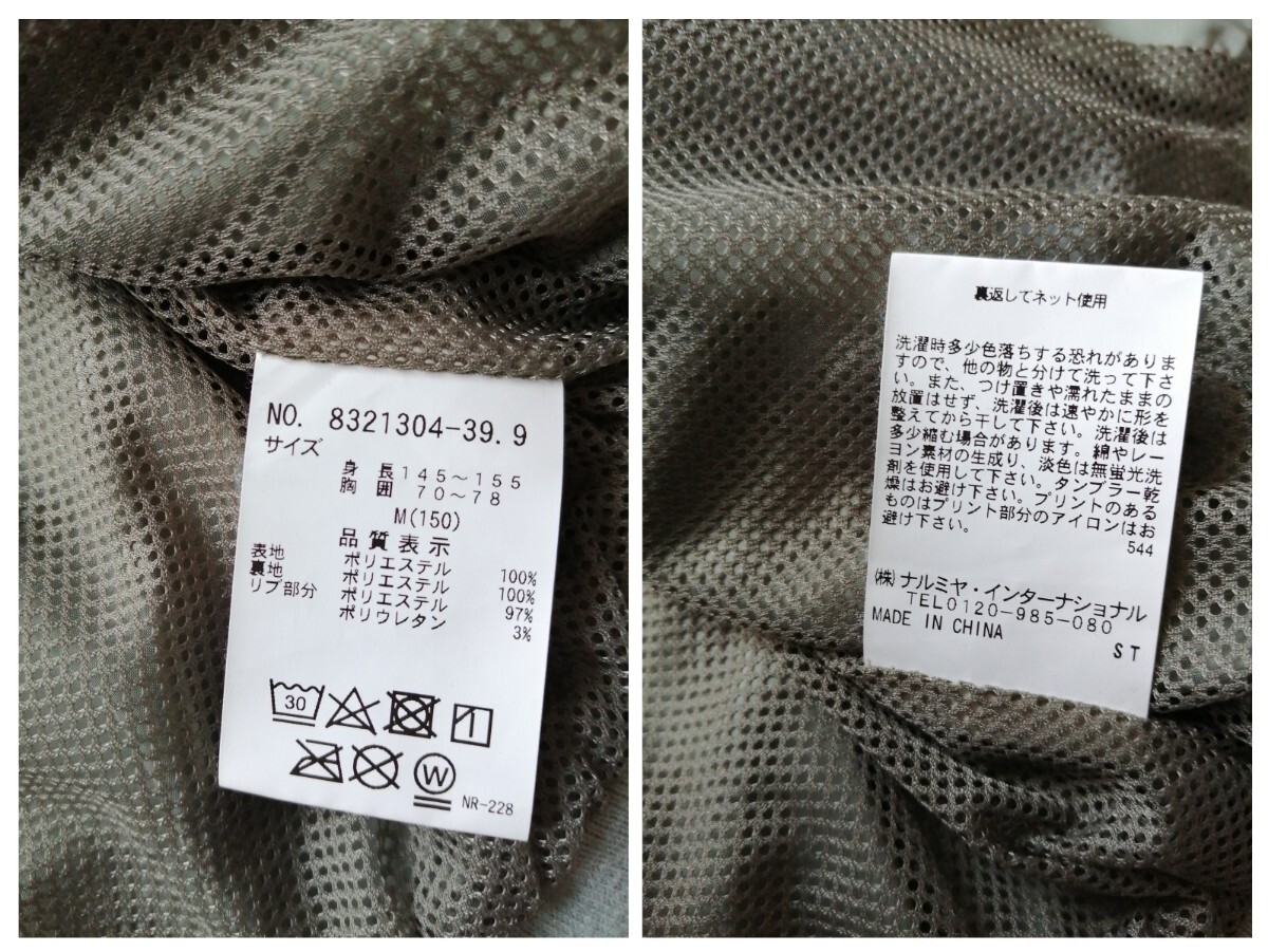 ・ リブ部分に毛羽立ちあり(襟、袖口、裾)